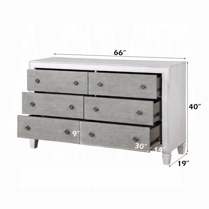 The Katia Dresser blends modern lines with a farmhouse-inspired vibe, making it a versatile choice for bedrooms aiming for a modern rustic aesthetic. Part of the Katia collection, this dresser pairs clean white framing with rustic gray fronts to create a cohesive, inviting look.