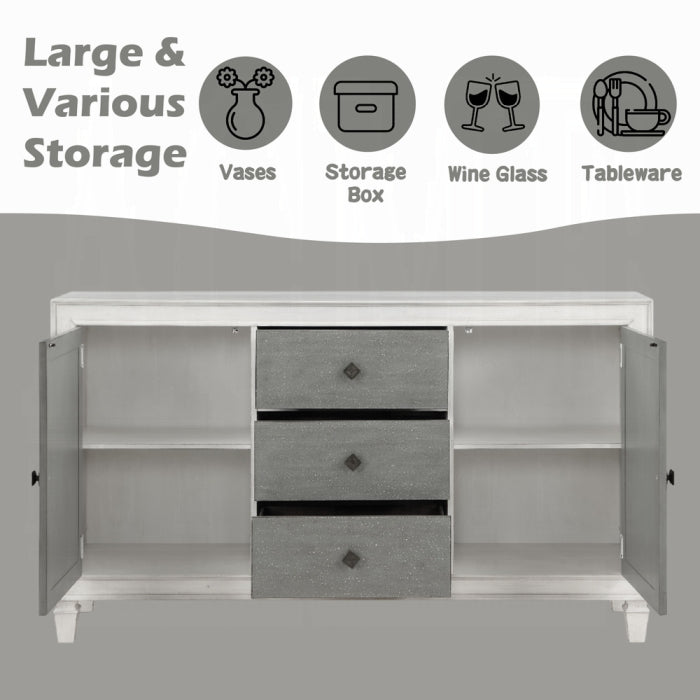 - Three ample drawers keep flatware, linens, and dining essentials organized