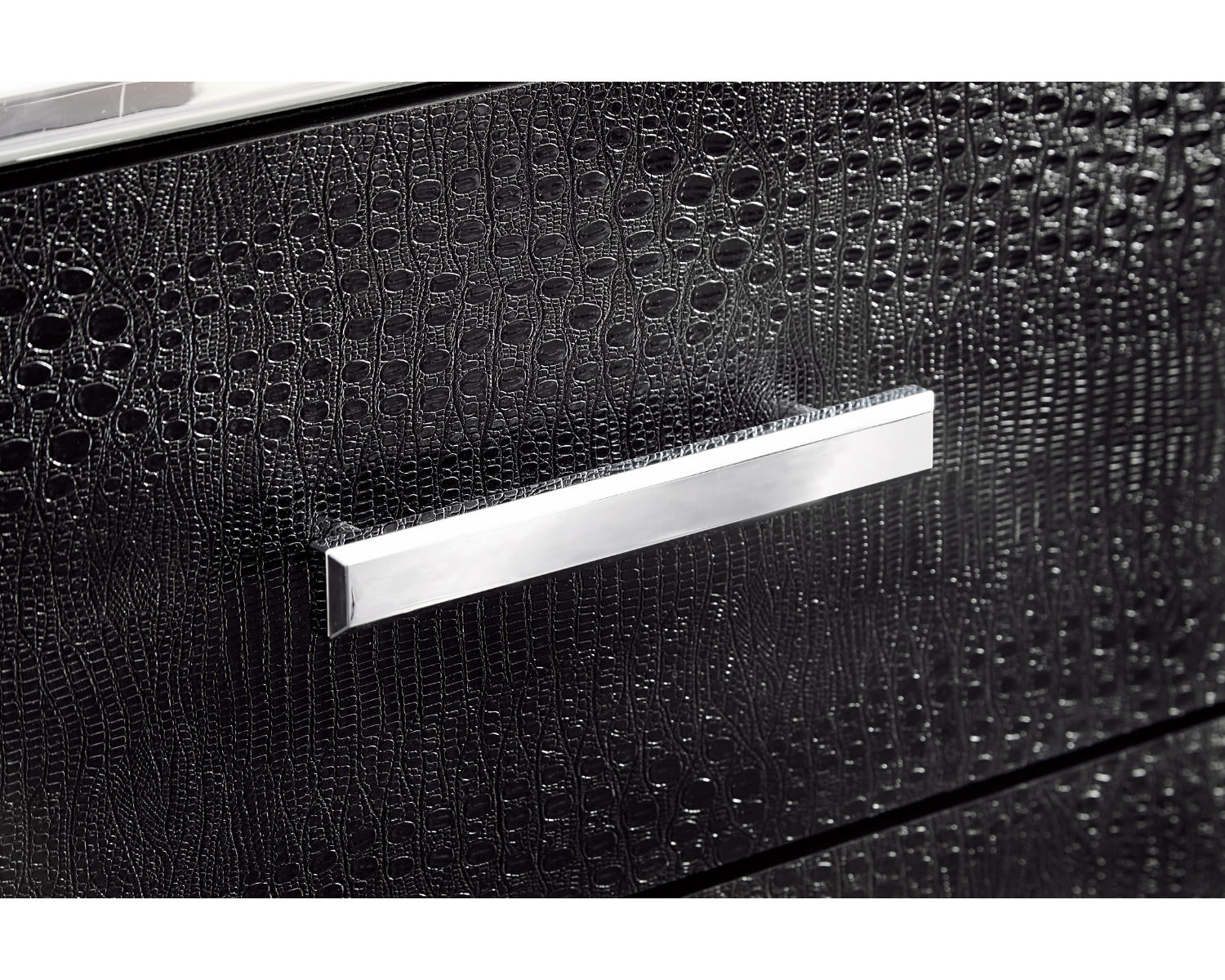 - Includes King Panel Storage Bed, Dresser, Mirror, and Nightstand in a cohesive black finish