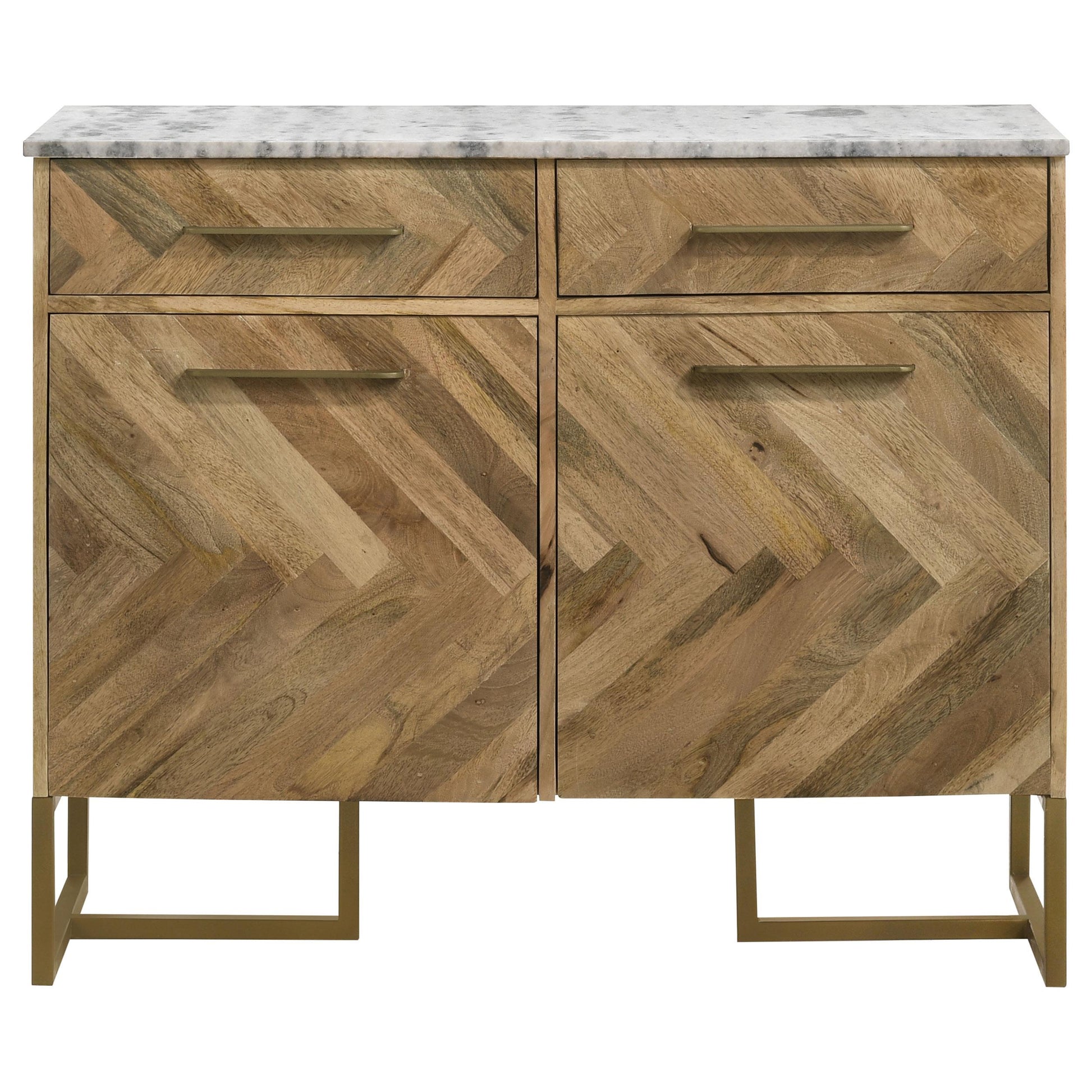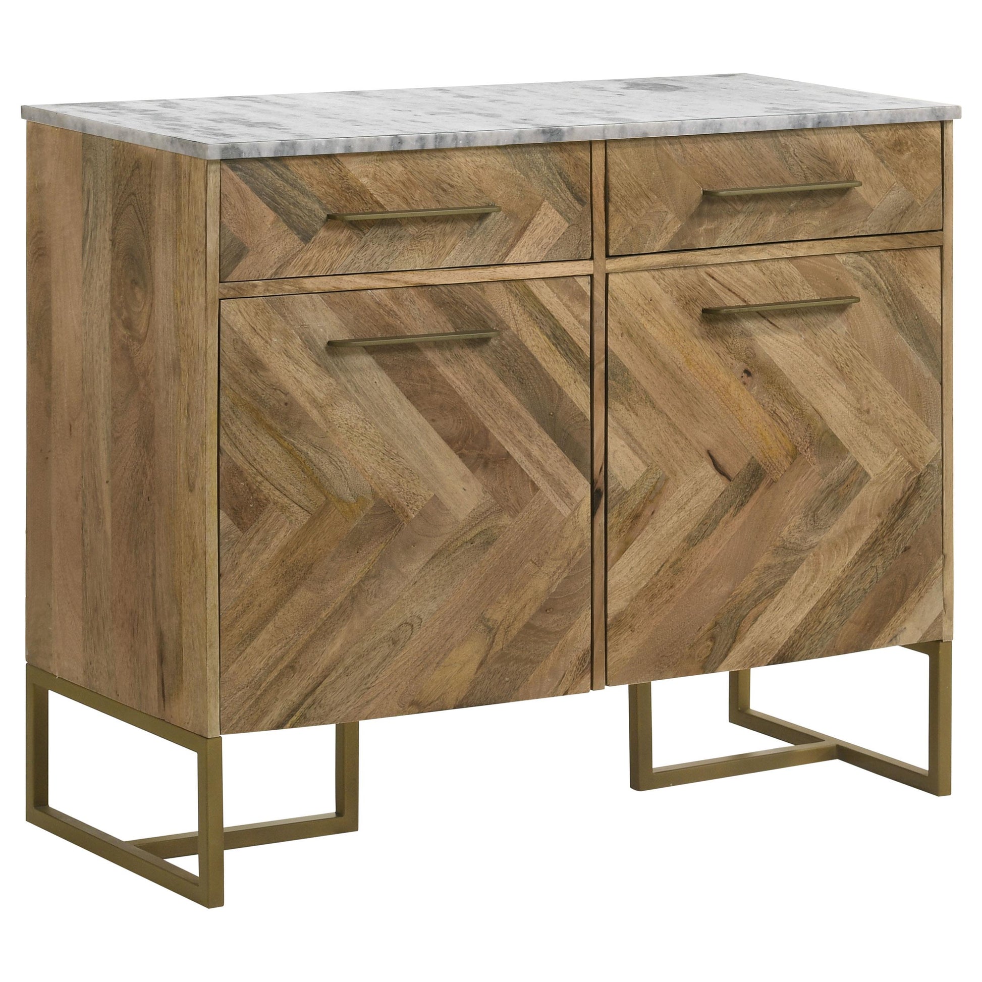 Keaton 2-door Marble Top Herringbone Accent Cabinet Natural