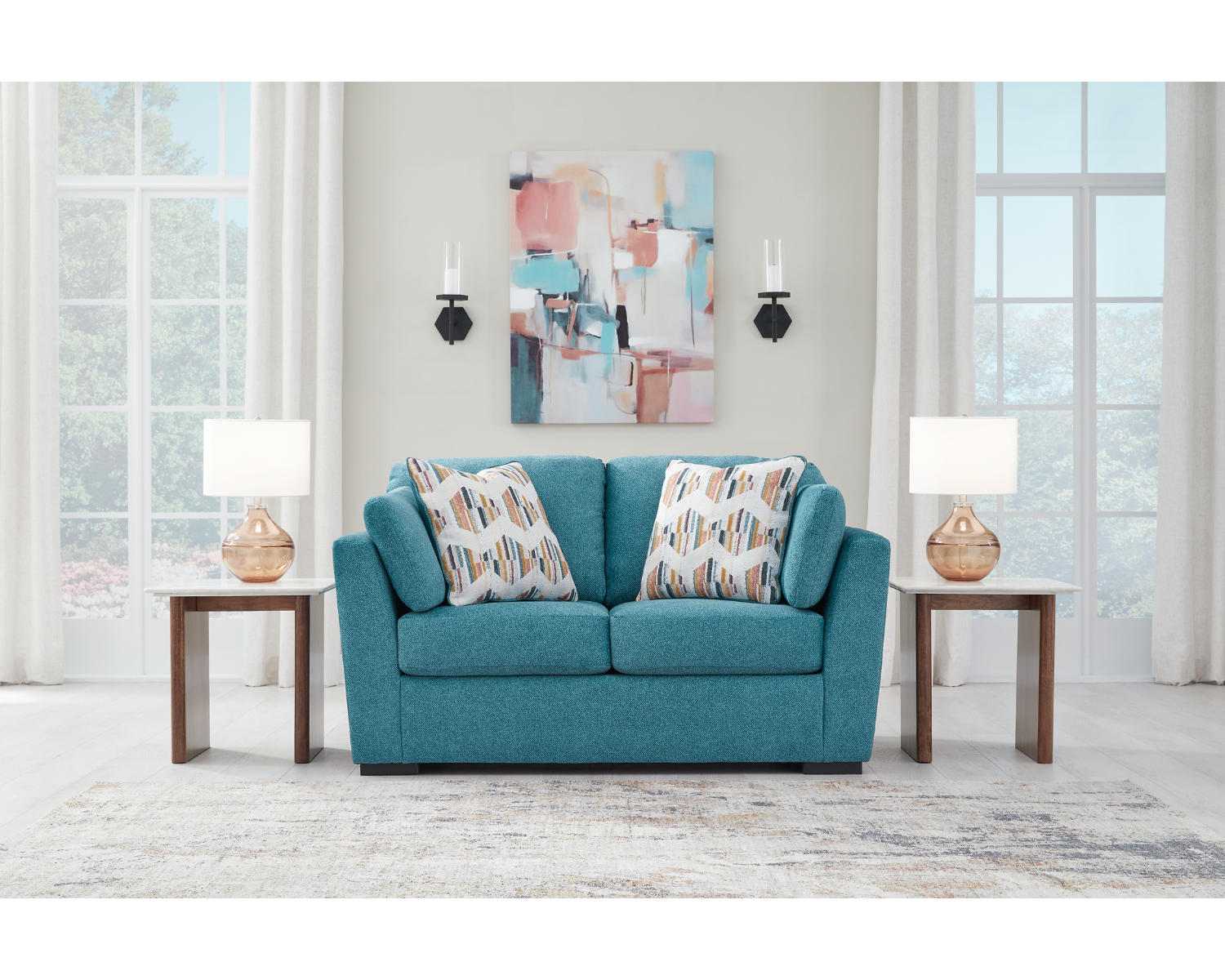 Meet the Keerwick Loveseat in Teal, a compact seating solution that brings modern style and everyday comfort to any room. Designed for apartments, living rooms, or cozy corners, it offers a welcoming spot without overwhelming your space. The rich teal hue adds a vibrant focal point while staying easy to pair with a variety of decors.