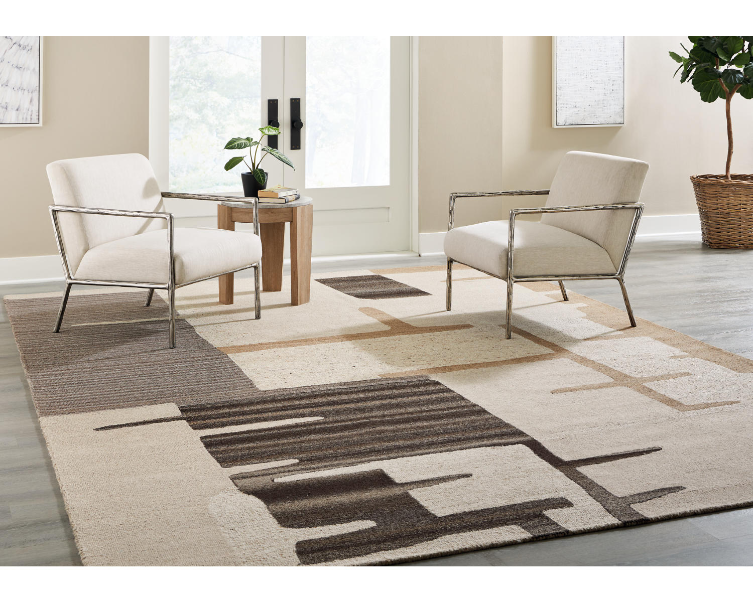 - Color: Neutral beige and brown palette that coordinates with diverse interiors
