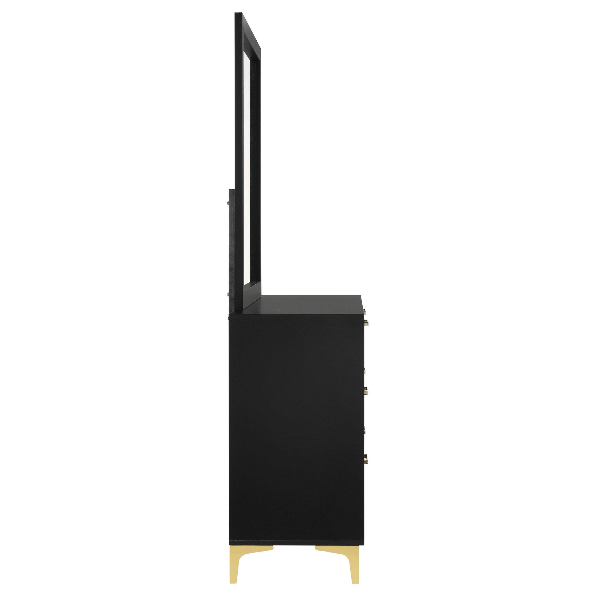 Introducing the Kendall 6-drawer Dresser with Mirror in Black — a versatile storage piece designed for modern bedrooms. This dresser combines generous drawer storage with a convenient built-in mirror, making it ideal for getting ready, organizing outfits, and keeping essentials close at hand.