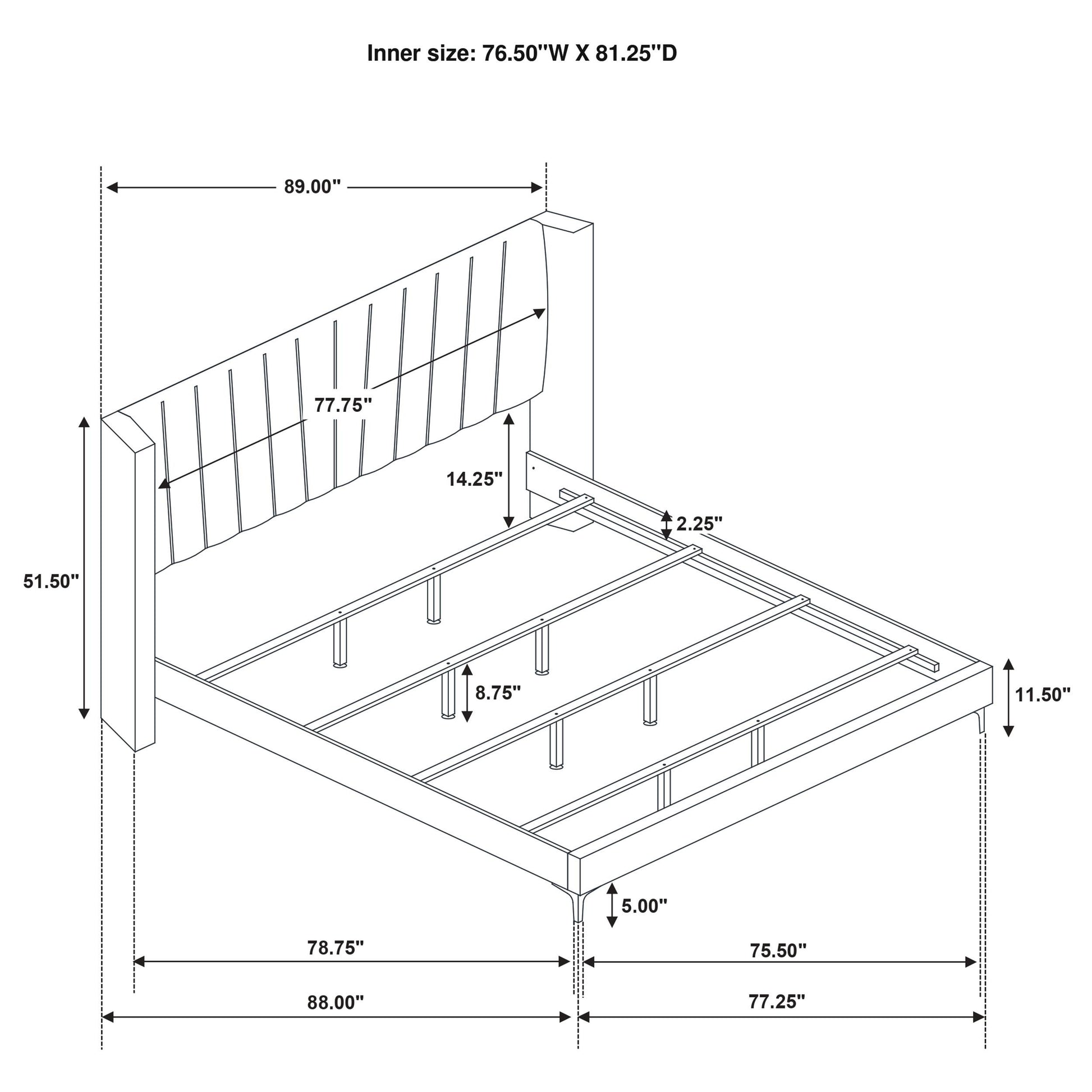 Elevate your bedroom with the Kendall Upholstered Eastern King Panel Bed Black. This piece blends a deep black finish with soft, upholstered elements to provide both a striking centerpiece and a comfortable retreat. Designed for Eastern King rooms, it offers a generous sleep surface and a clean, contemporary silhouette that complements a wide range of decor.