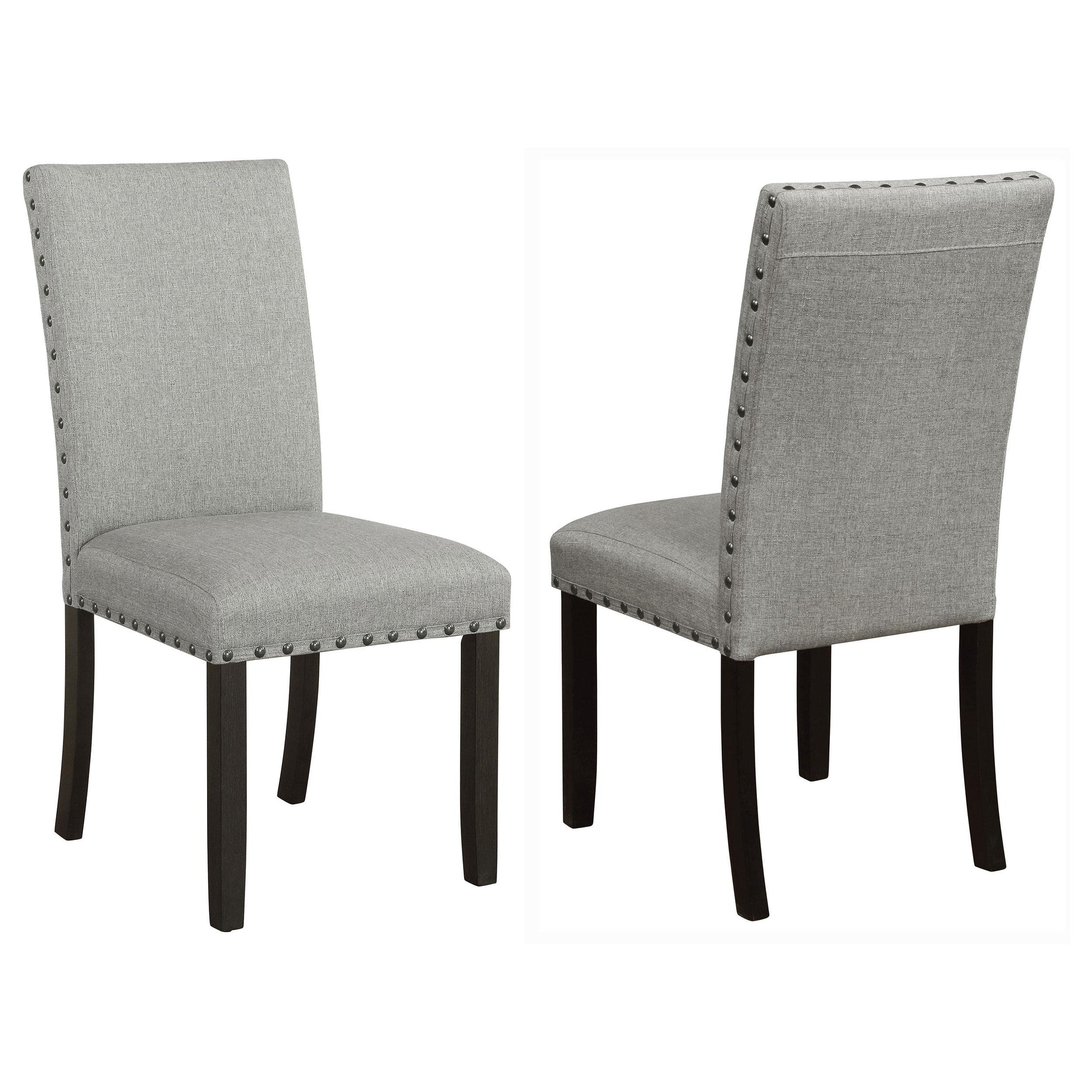 Upgrade your dining space with the Kentfield Solid Back Upholstered Side Chairs in Grey and Antique Noir. This set of two chairs blends clean lines with comfortable seating, making them ideal for dining rooms, kitchens, or entertaining spaces. The versatile color palette works with a wide range of decors, from modern to traditional.