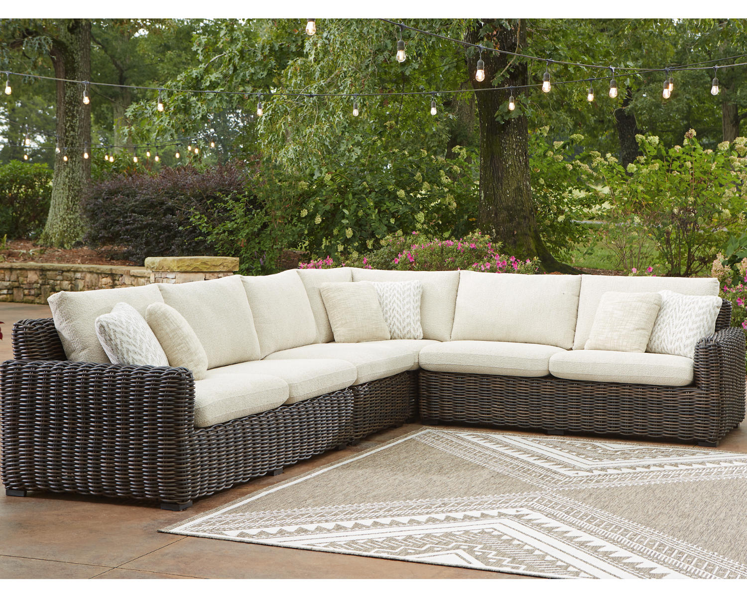 Meet the Kimora 4-Piece Outdoor Sectional, a modular seating set designed for outdoor living. Perfect for patios, decks, and entertaining spaces, it adapts to gatherings with configurable seating. The beige and dark brown color palette delivers a timeless, versatile look that complements a variety of exteriors.