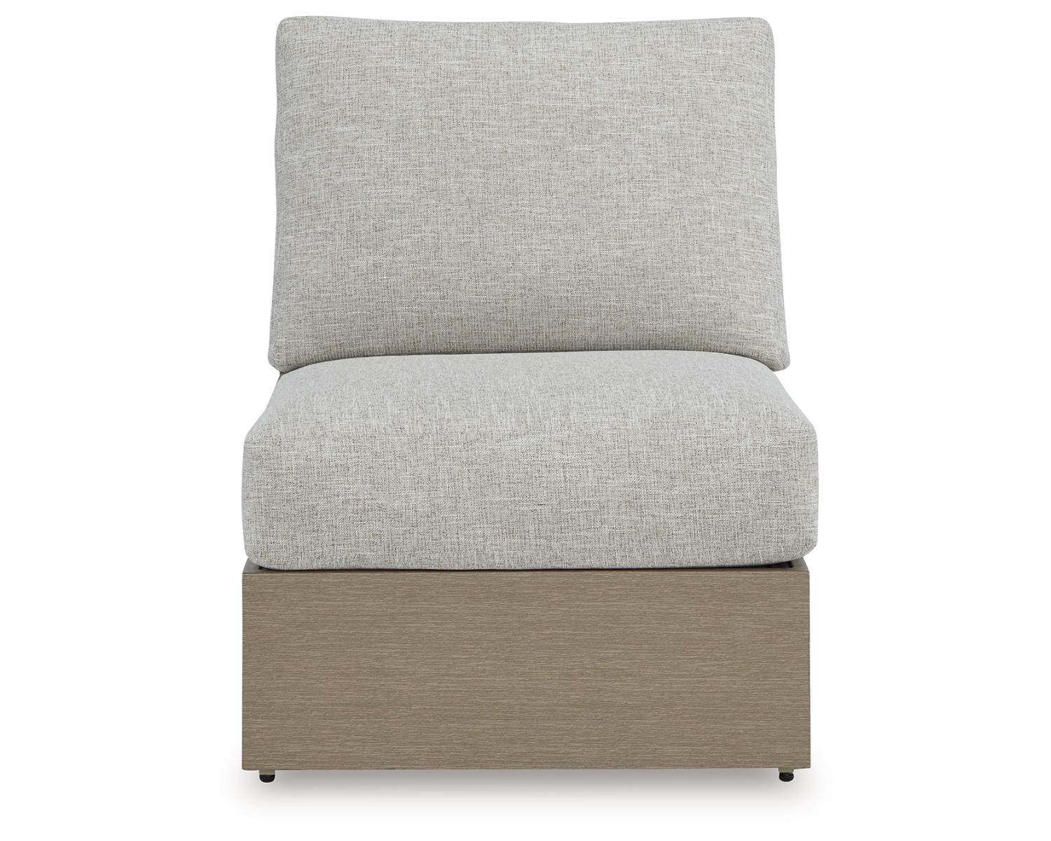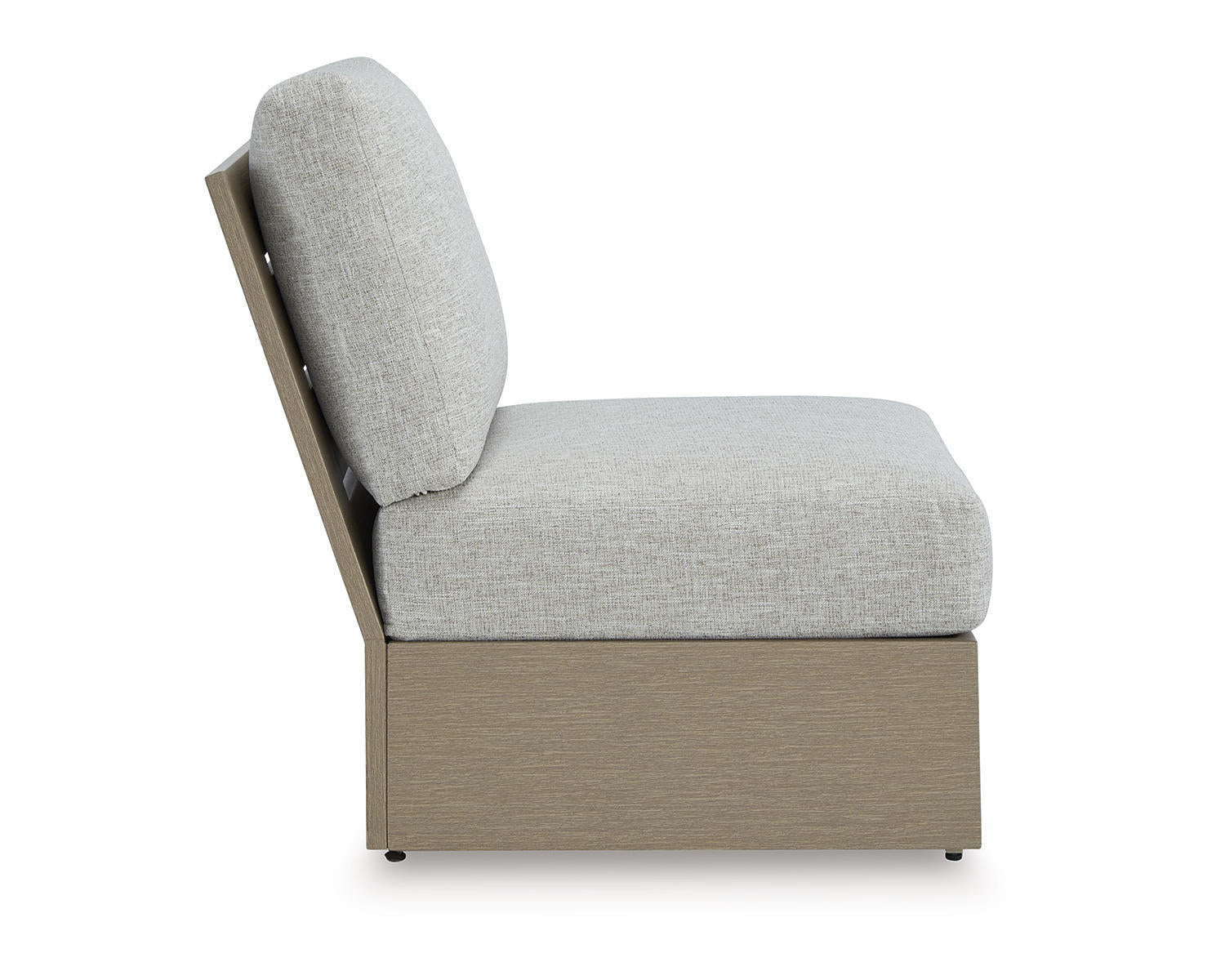 Discover a versatile outdoor seating option designed for comfort and easy arrangement. The Kimpton Isle Outdoor Armless Chair with Cushion is ideal for patios, decks, and other alfresco spaces, offering a clean silhouette with a cozy, included cushion in a Brown/Beige color.