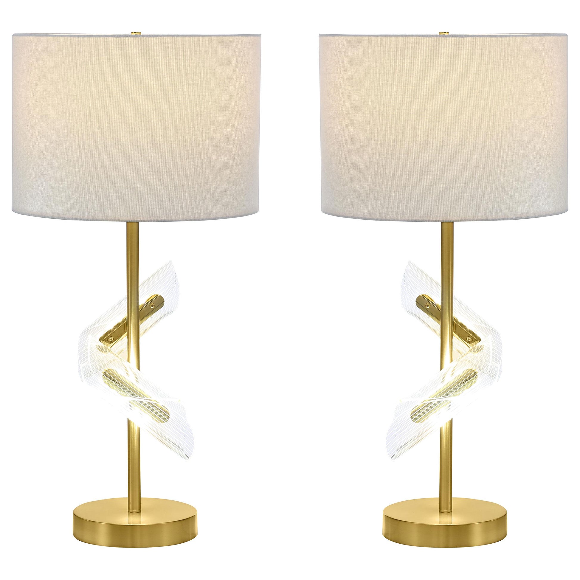 Elevate your space with the Kingsley 30-inch Drum Shade Table Lamp in Gold. This set of two lamps offers a timeless silhouette and warm illumination that works well in living rooms, bedrooms, or entryways. The pairing creates balanced lighting and a cohesive look that fits a variety of decor styles.