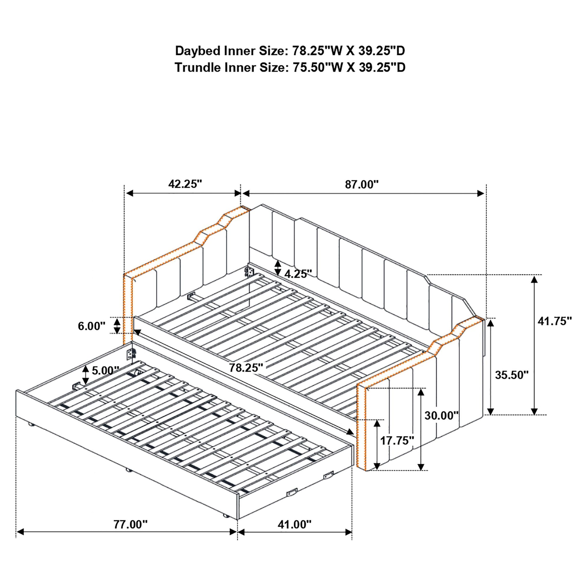 Meet the Kingston Upholstered Twin Daybed with Trundle in Charcoal—an adaptable seating and sleeping solution for guest rooms, bedrooms, or compact living spaces. With a sleek charcoal finish and built-in trundle, it blends modern style with practical convenience. This daybed is designed for everyday use, offering comfort during the day and a ready-made bed for guests at night.