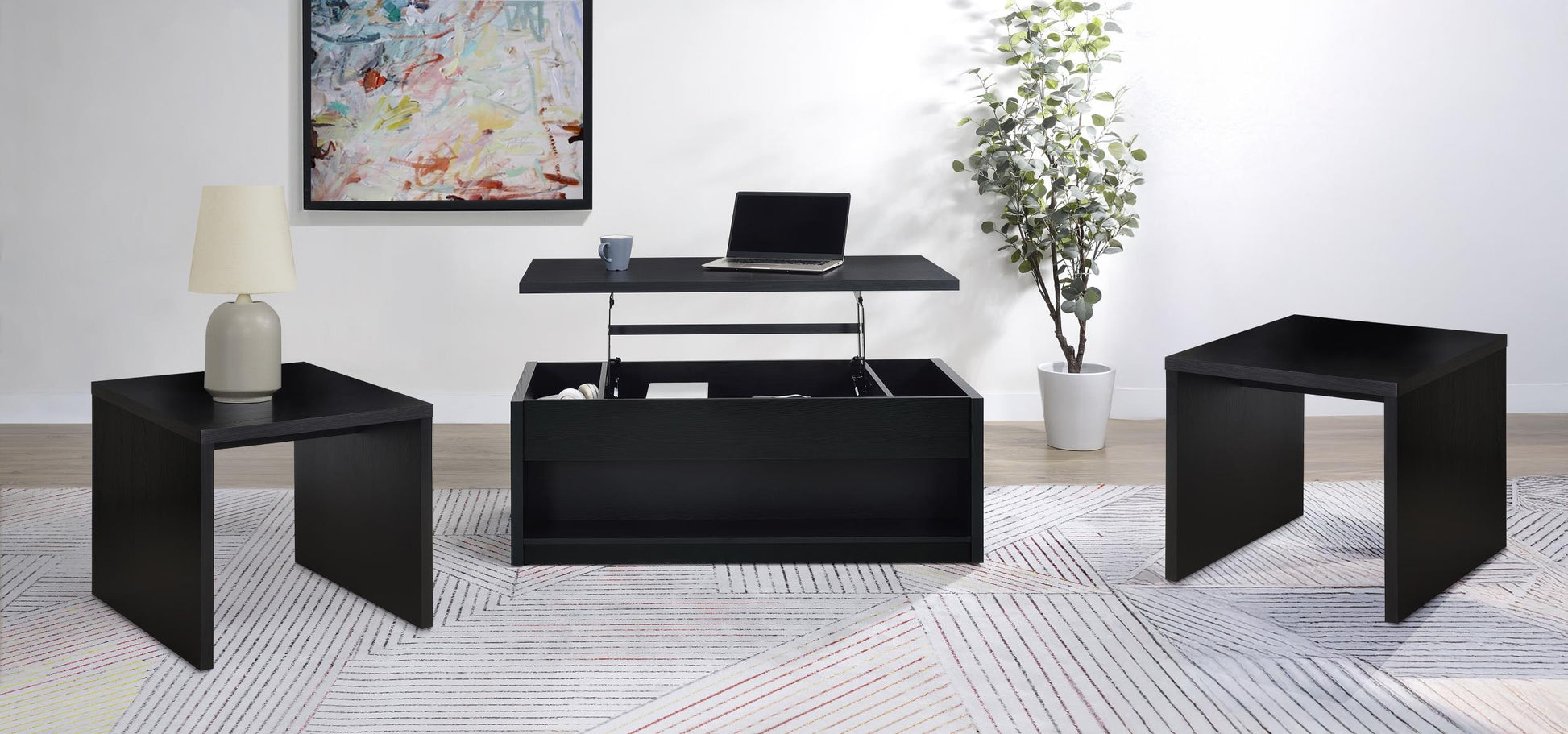 Knapp 3-piece Lift Top Coffee Table Set Black