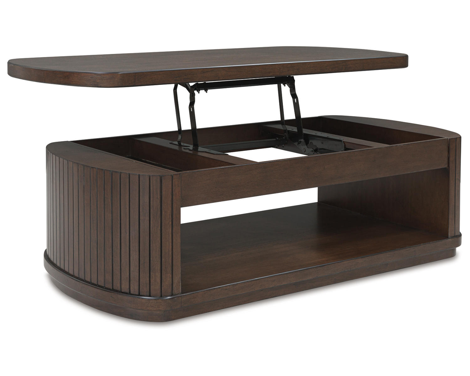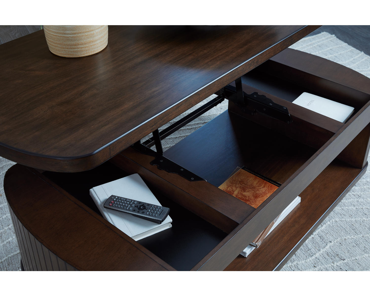Discover the Korestone Lift-Top Coffee Table, a versatile centerpiece for modern living rooms. This dark brown cocktail table blends functional design with a clean, contemporary look that's ideal for daily use and small spaces. The lift-top mechanism adds flexibility for work, meals, or casual browsing at the sofa.