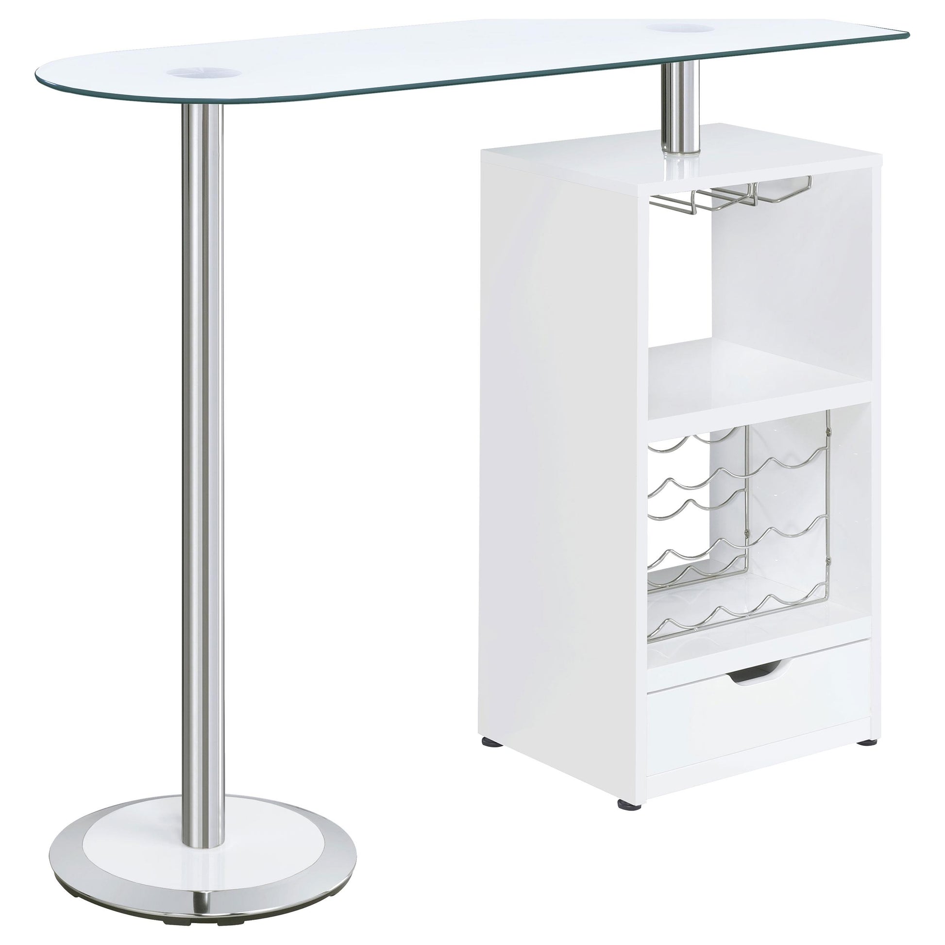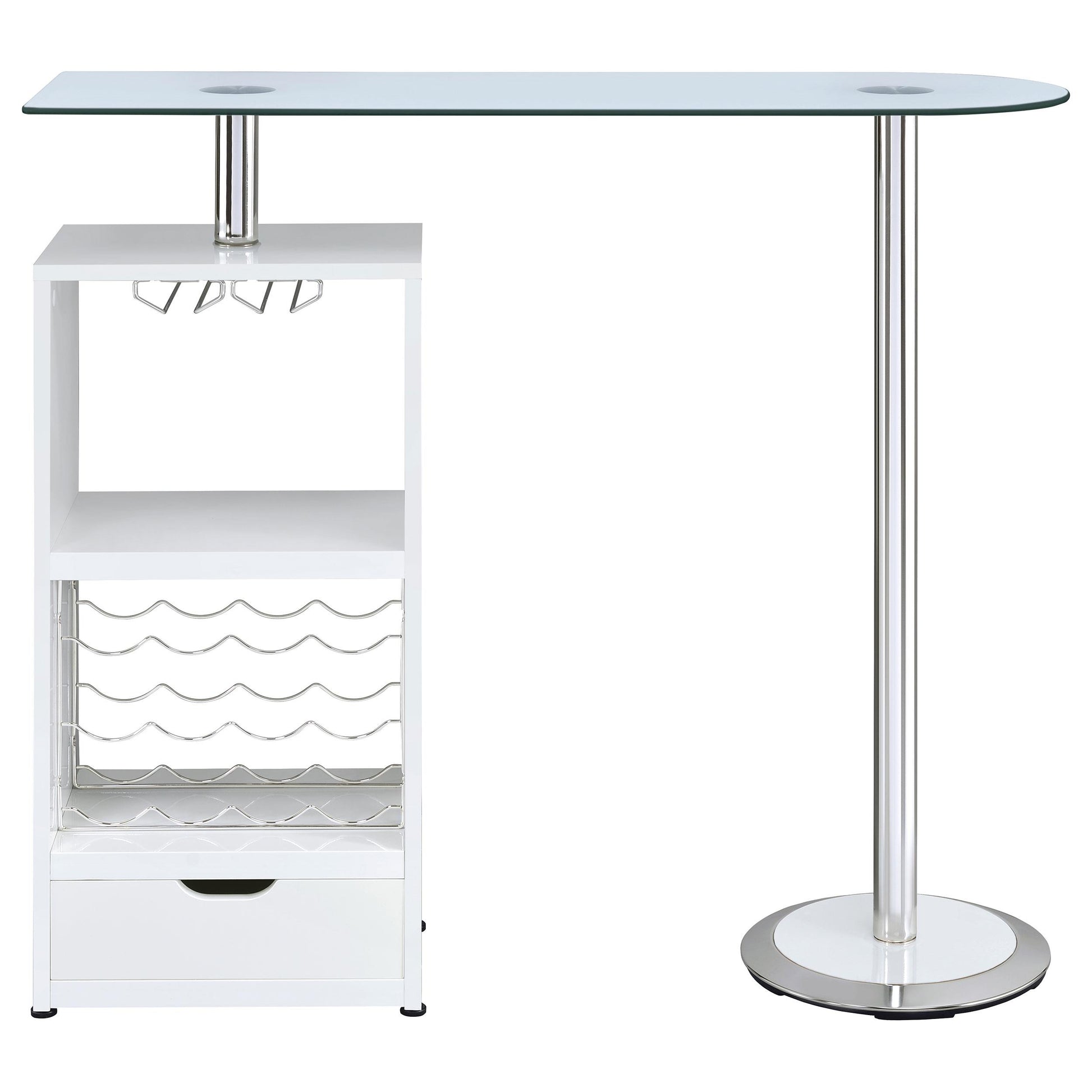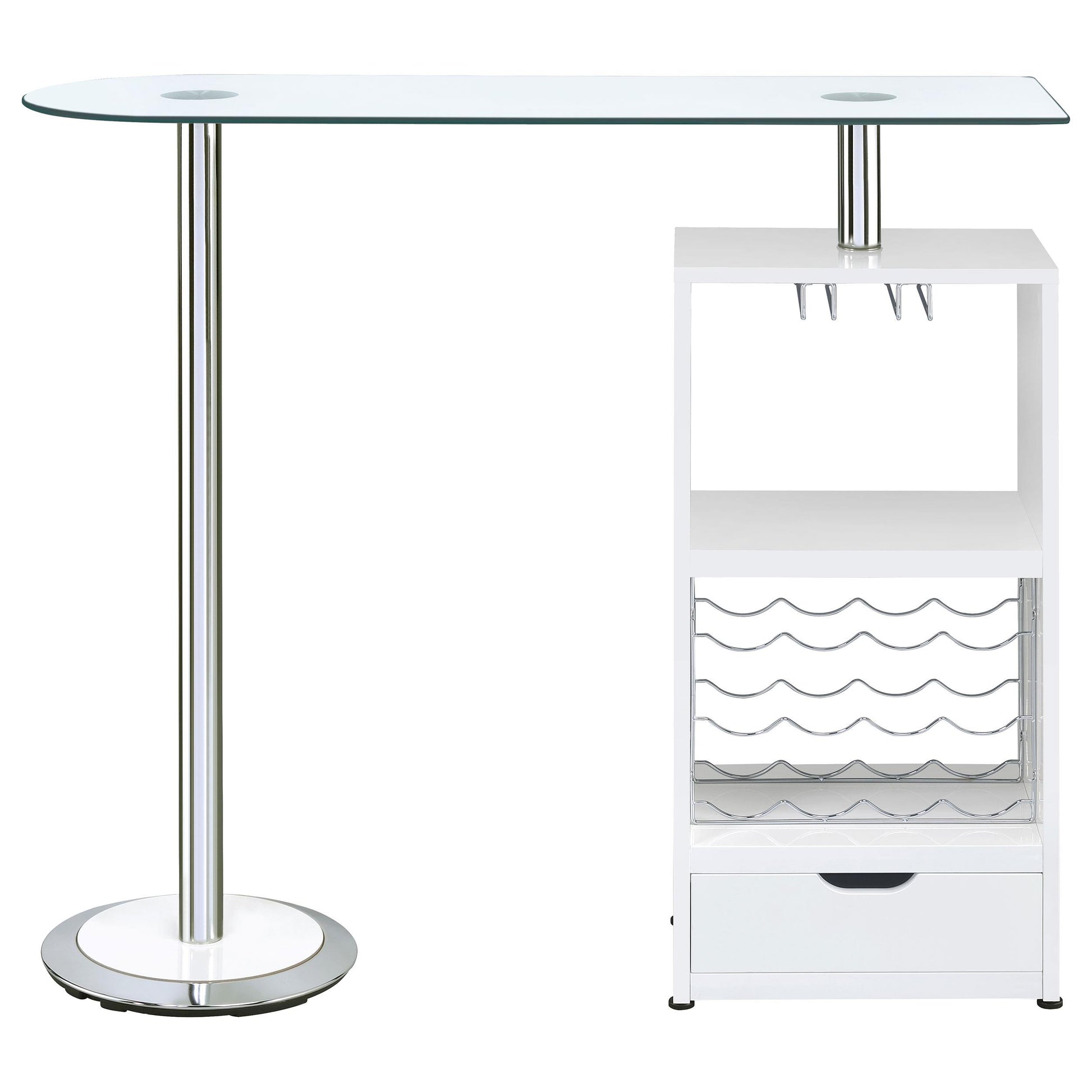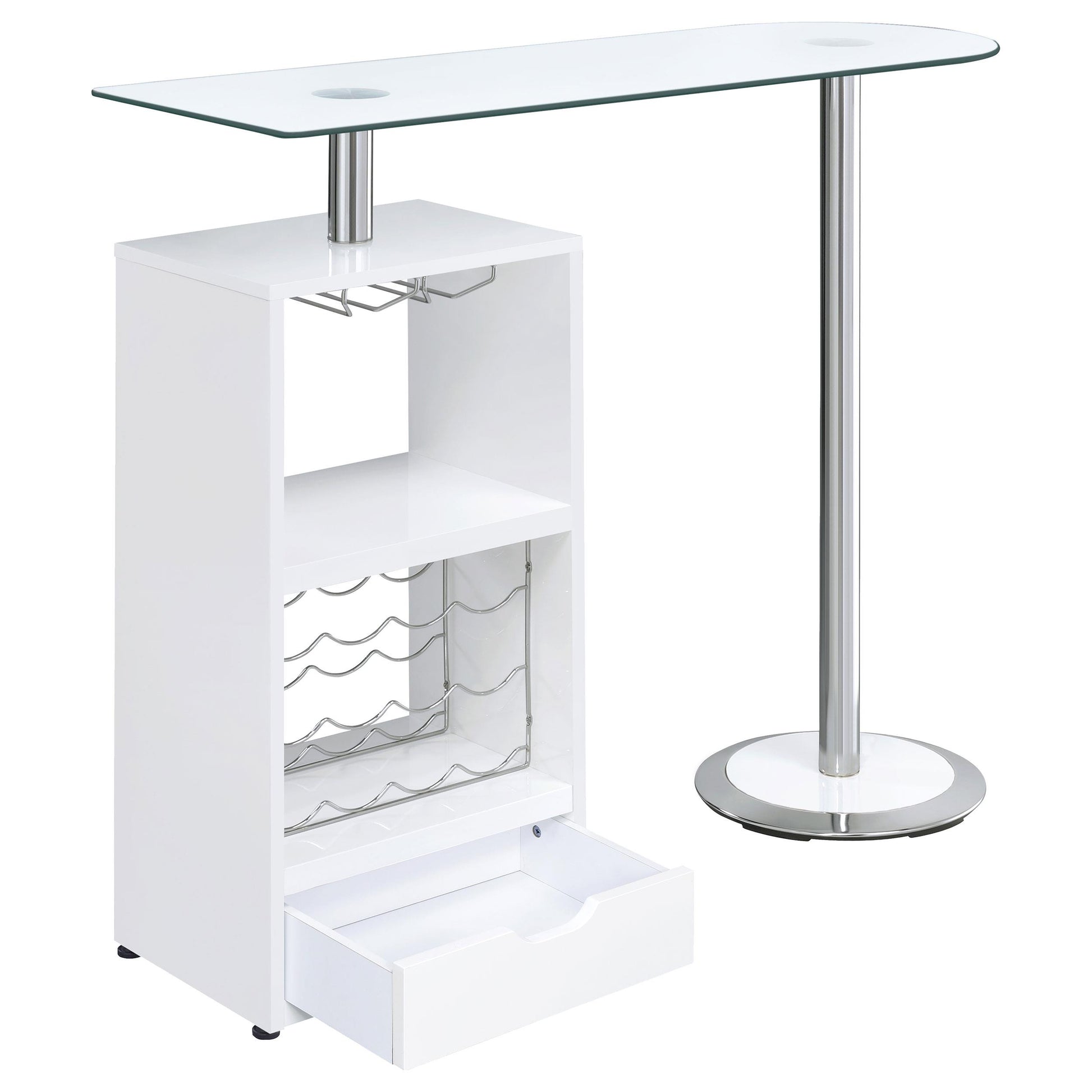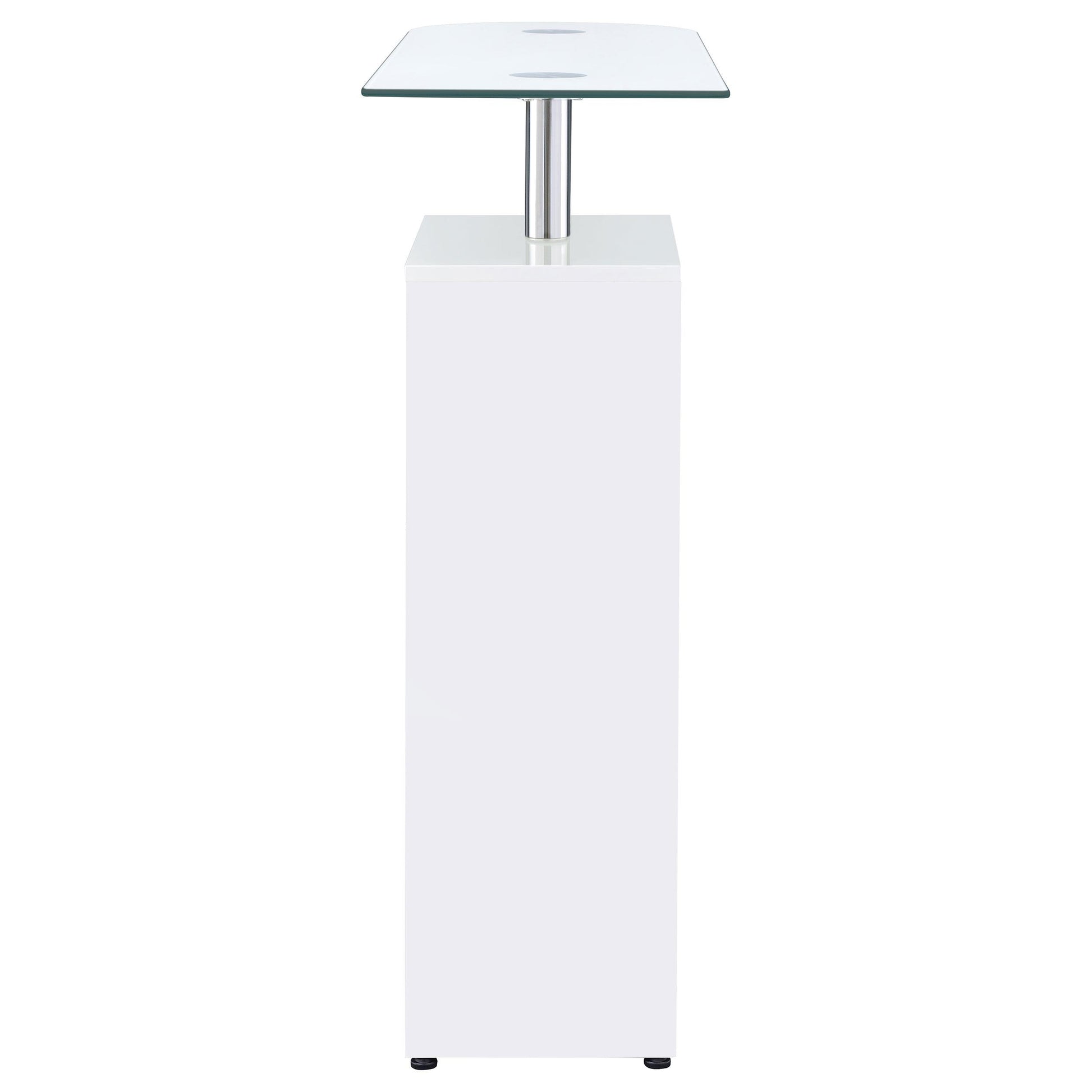 Introducing the Koufax 1-drawer Bar Table in Glossy White—a sleek, space-saving centerpiece for small kitchens, apartments, or home bars. It’s designed for modern living with a clean, contemporary look and a practical storage drawer. This bar table provides a smooth surface for drinks and snacks while keeping everyday essentials neatly tucked away.