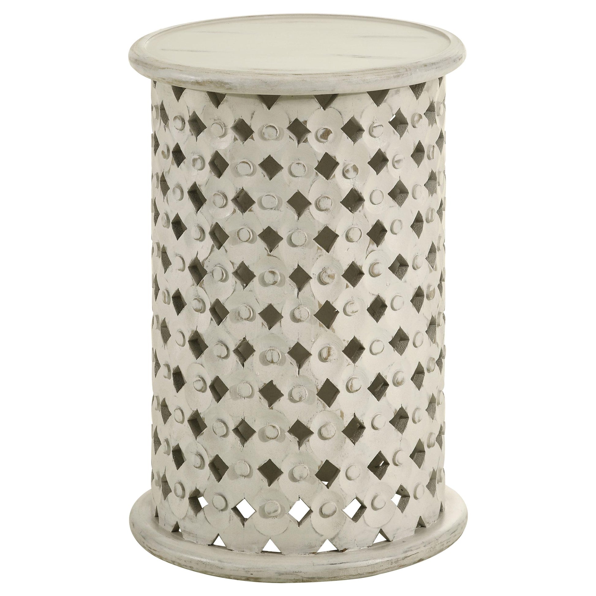 Introducing the Krish 24-inch Round Mango Wood Side Table in a clean white-washed finish. This compact accent piece is designed for living rooms, bedrooms, and entryways, offering a natural touch of warmth without crowding your space. Crafted from solid mango wood, it combines durability with a timeless, versatile look.