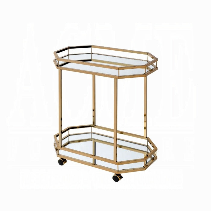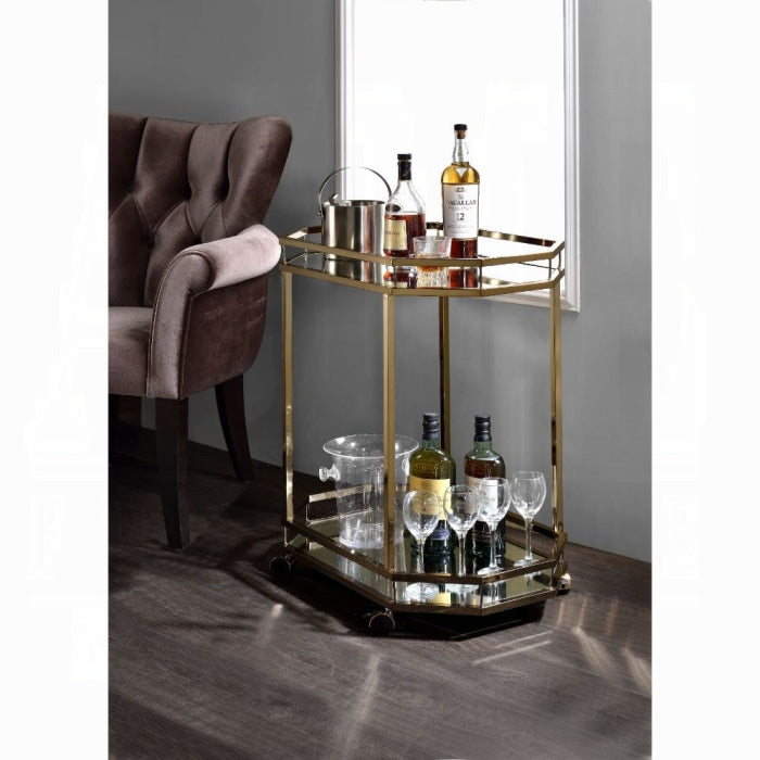 Upgrade entertaining with the Lacole Serving Cart—a chic blend of champagne-finish metal and mirrored shelves that adds instant glamour to any space. Designed for stylish hosts who need function and flair in one versatile piece.