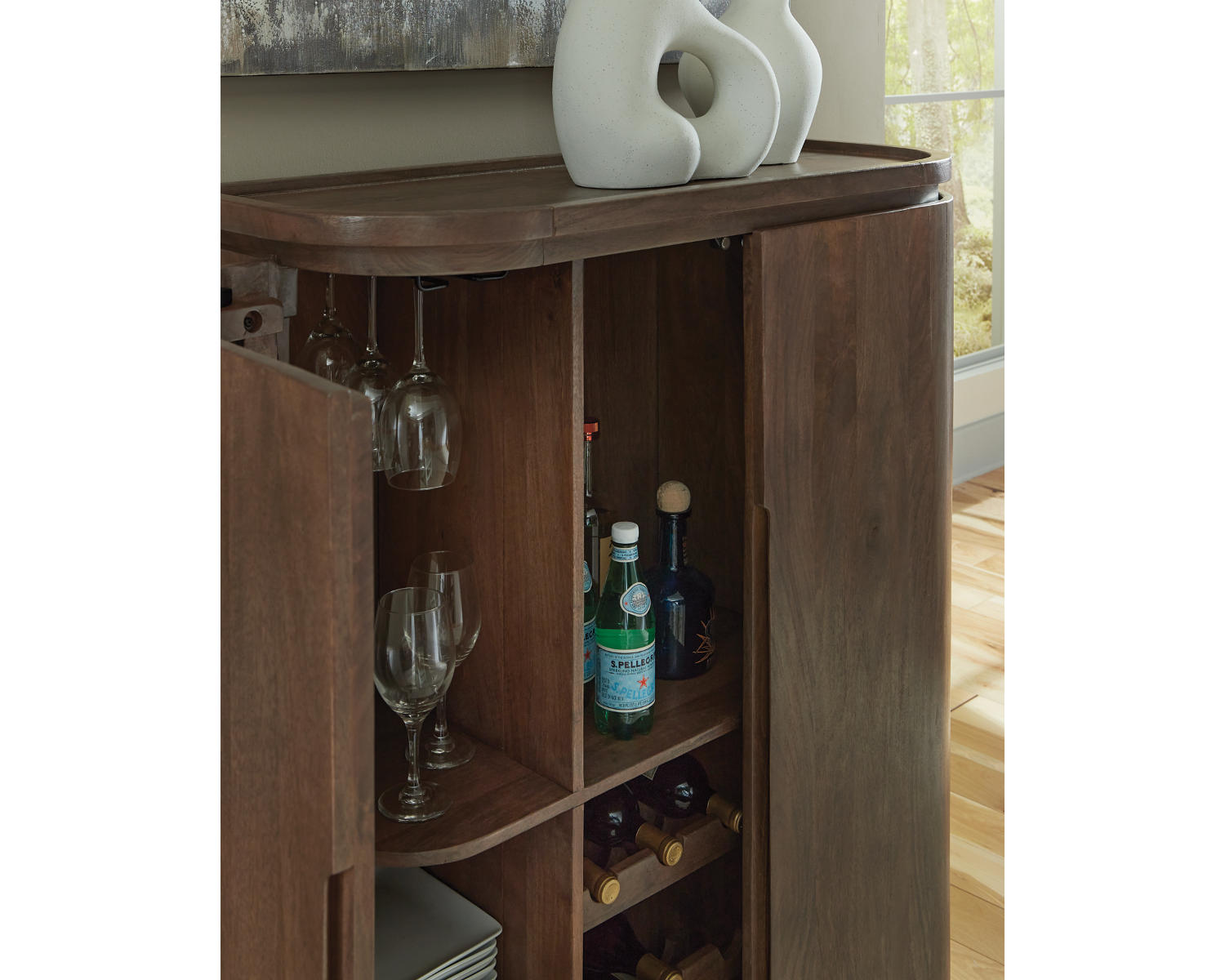The Landermont Bar Cabinet in Medium Brown adds a sophisticated touch to any entertaining space. Designed for home use, it provides a dedicated spot to store and display bottles, glassware, and bar tools while maintaining a clean, refined look. The warm Medium Brown finish helps it blend with a wide range of decor, from traditional to contemporary.