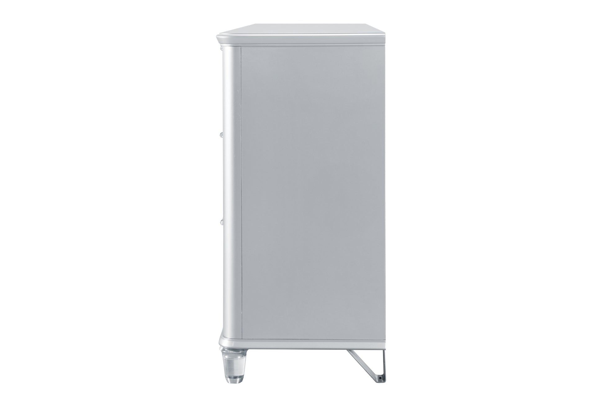 Introducing the LANDO Silver Dresser—a modern storage piece designed for bedrooms that value clean lines and practical organization. This dresser blends a contemporary silhouette with a timeless silver finish, making it a versatile addition for master bedrooms, guest rooms, or compact spaces. It's crafted for everyday use and easy maintenance, delivering a refined look that lasts.