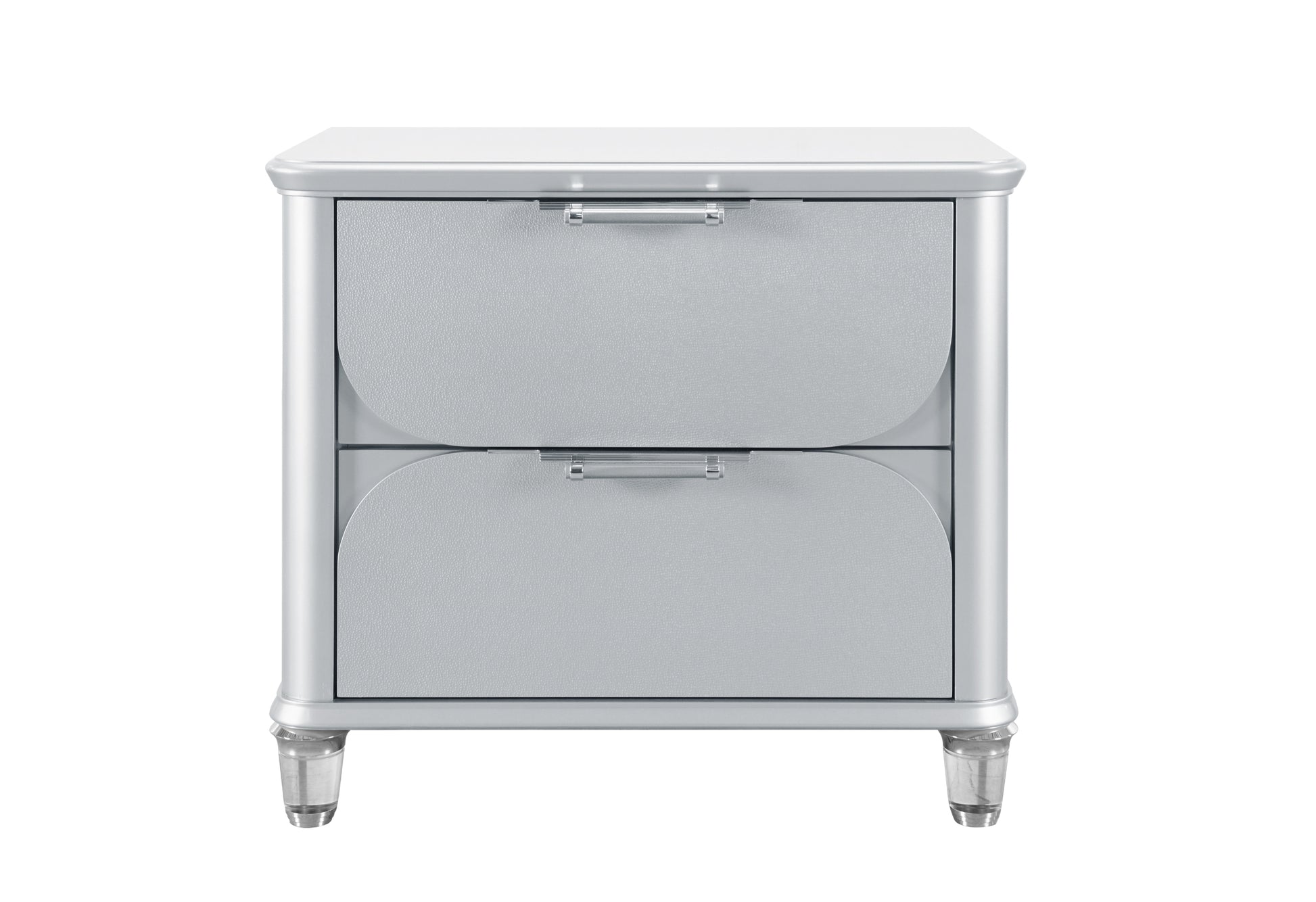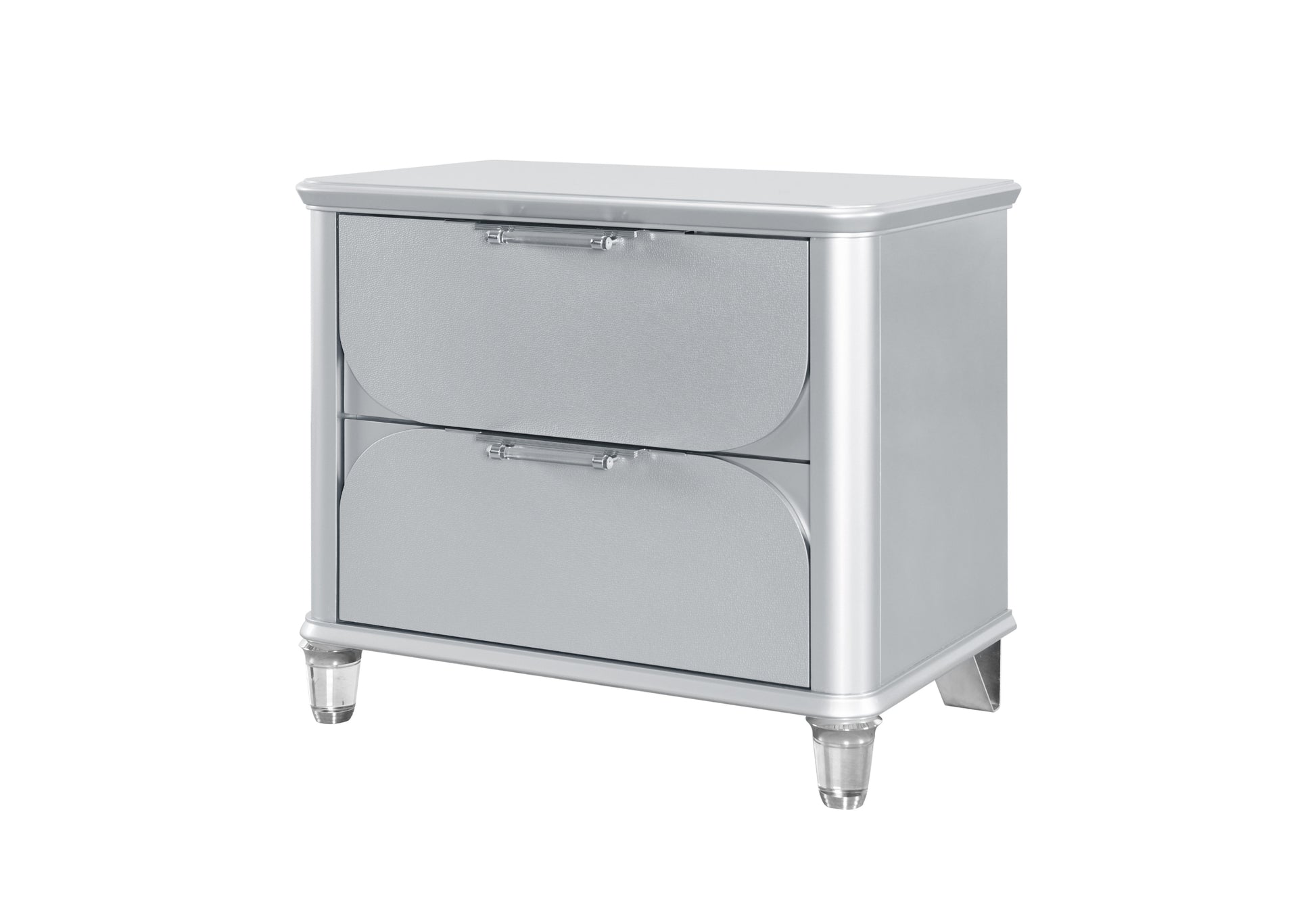 Introducing the LANDO SILVER NIGHTSTAND — a versatile bedside companion crafted for modern bedrooms. With a sleek silver finish and a compact footprint, it's designed to keep essentials within reach while adding a touch of refined style.