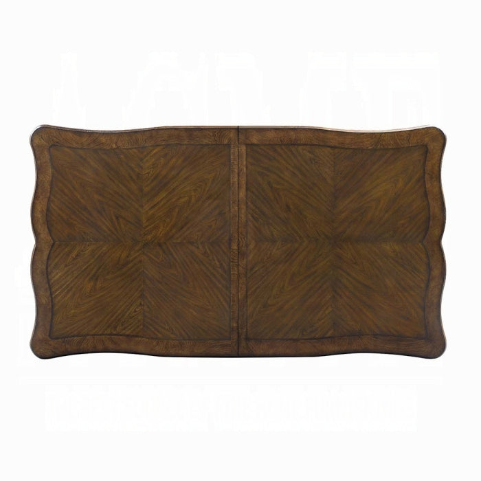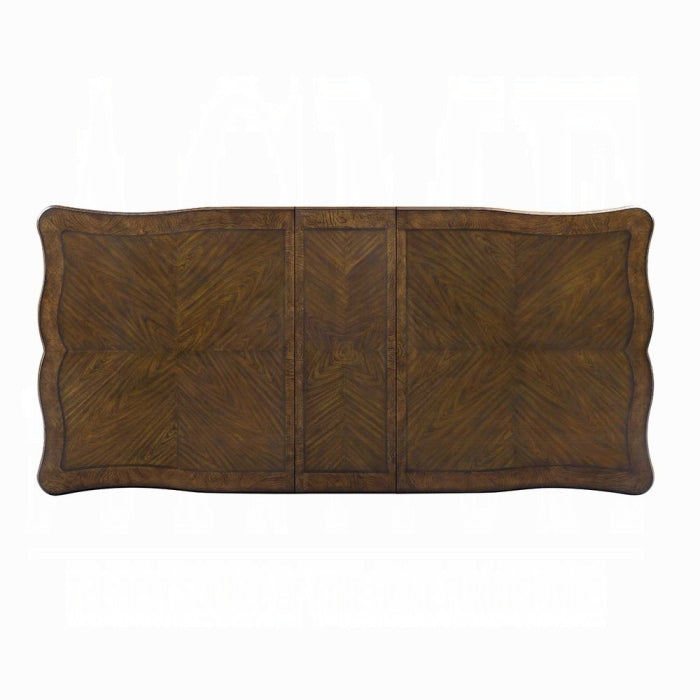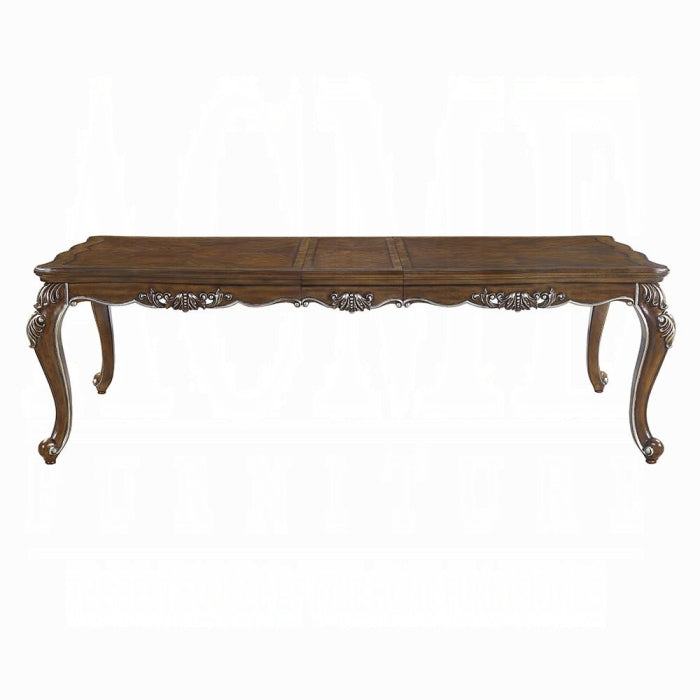 Latisha Dining Table blends traditional design with modern accents to create a versatile centerpiece for any dining room. It’s ideal for households that appreciate timeless elegance with contemporary details. The antique oak finish and hand-brushed silver trim highlight the elaborate floral moldings along the legs and apron, adding subtle sophistication to everyday dining.