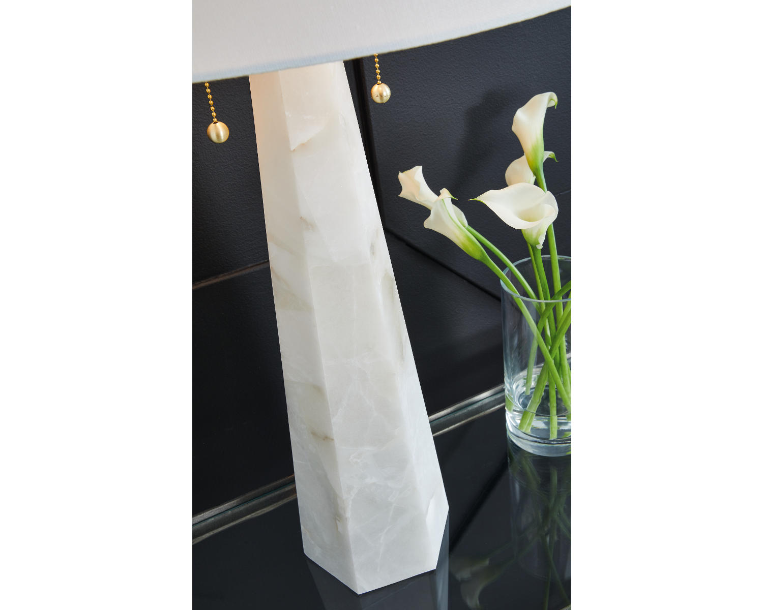 - Material & Finish: alabaster with a white finish for a natural, luminous glow.