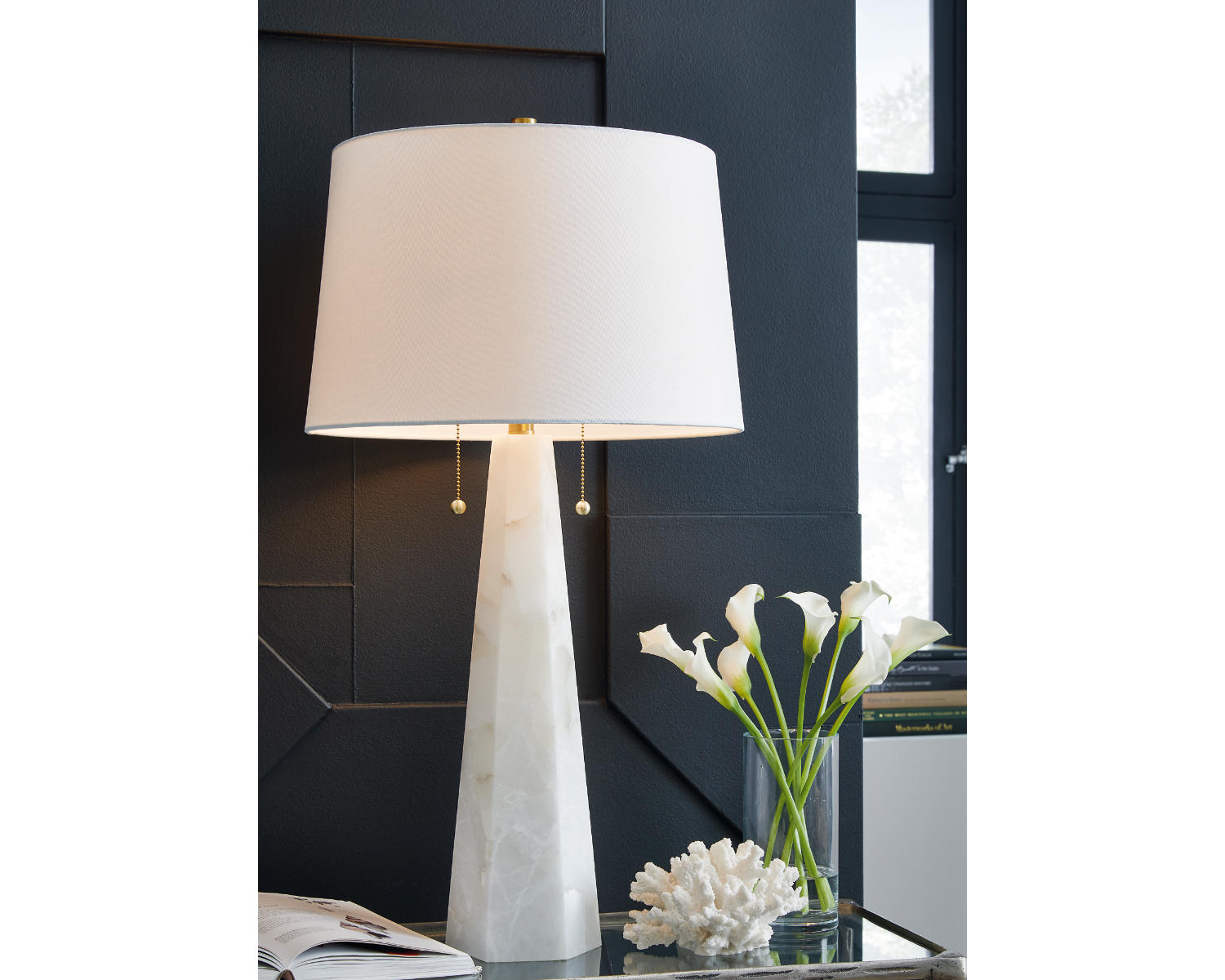 Meet the Laurellen Table Lamp, a refined piece that brings warm ambient light to any room. Crafted in white alabaster, it's ideal for living rooms, bedrooms, or desks. With a clean silhouette and soft glow, it blends timeless charm with modern simplicity.