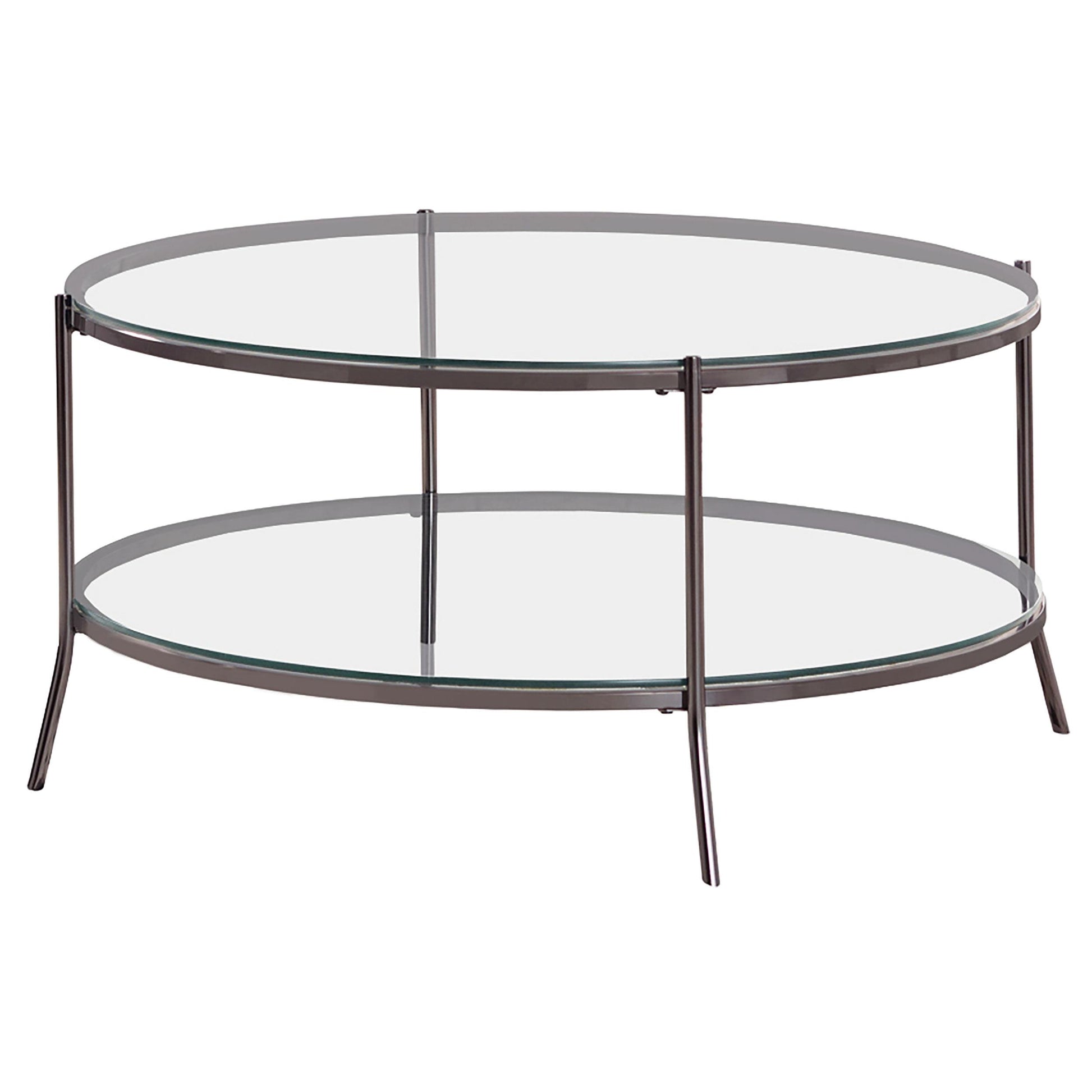 Laurie 1-shelf Glass Top Round Coffee Table Black Nickel