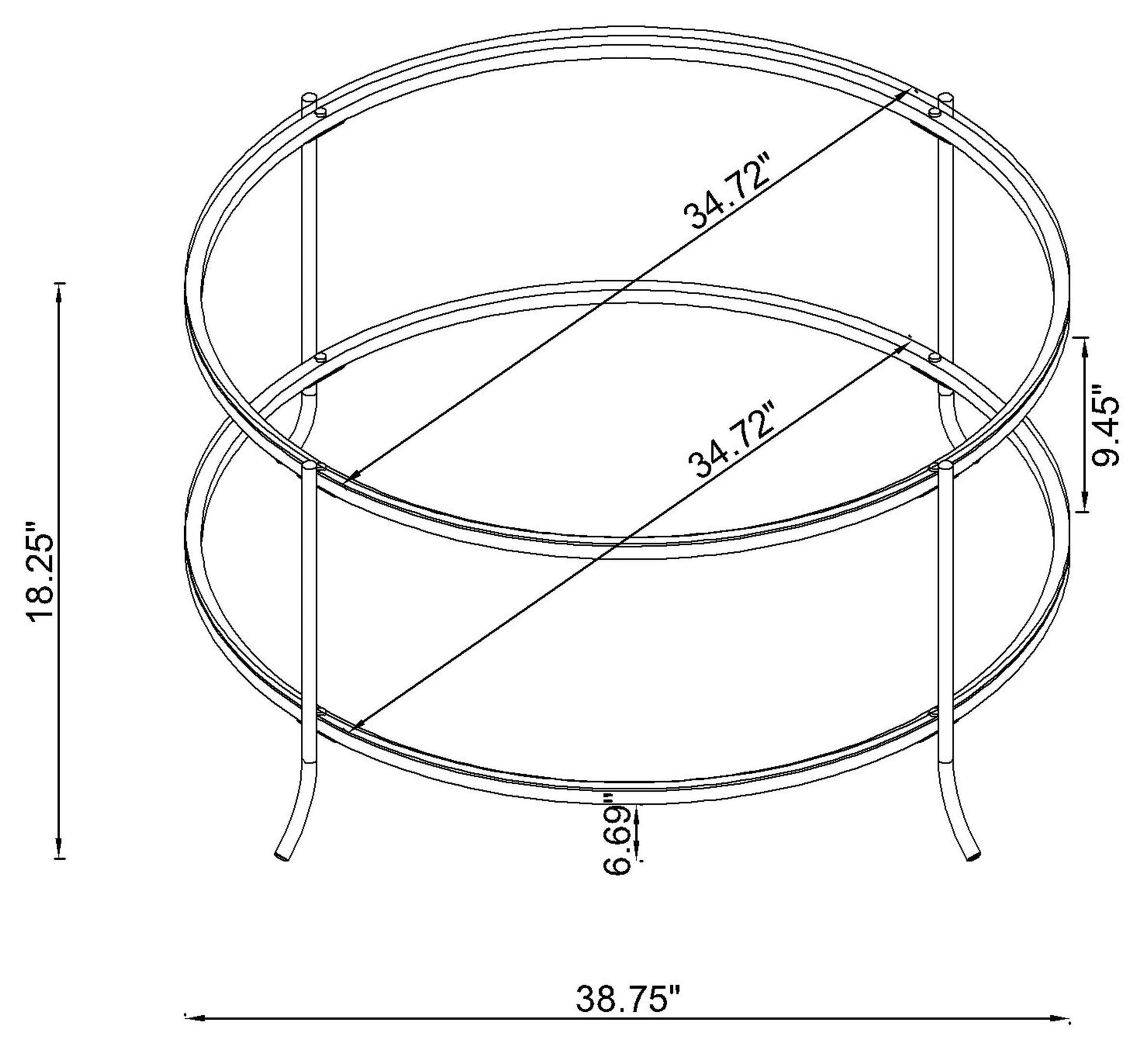 - Round glass top with a single lower shelf for remote controls, magazines, or décor.