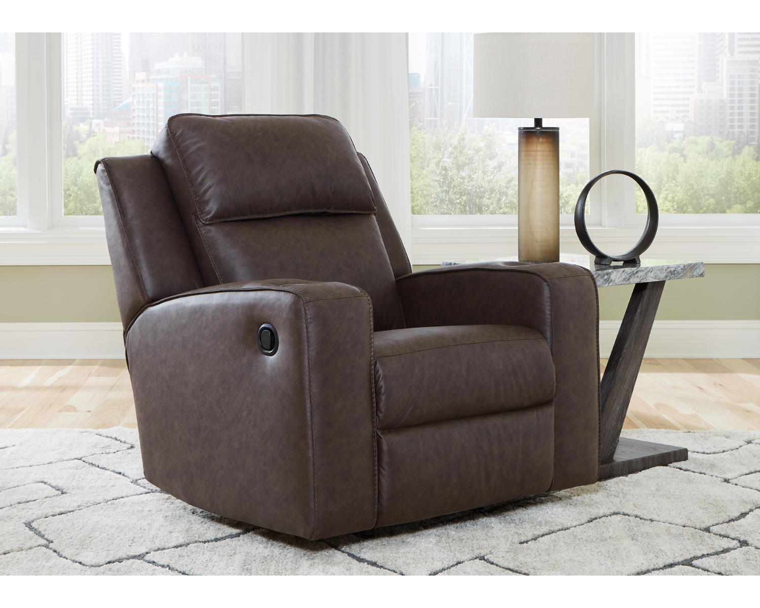 Experience everyday comfort with the Lavenhorne Recliner, a versatile rocker recliner finished in umber. Designed for living rooms, family rooms, or cozy corners, it invites you to sit back, rock gently, and unwind after the day. Built for smooth operation and lasting comfort, this chair blends practical function with timeless style.