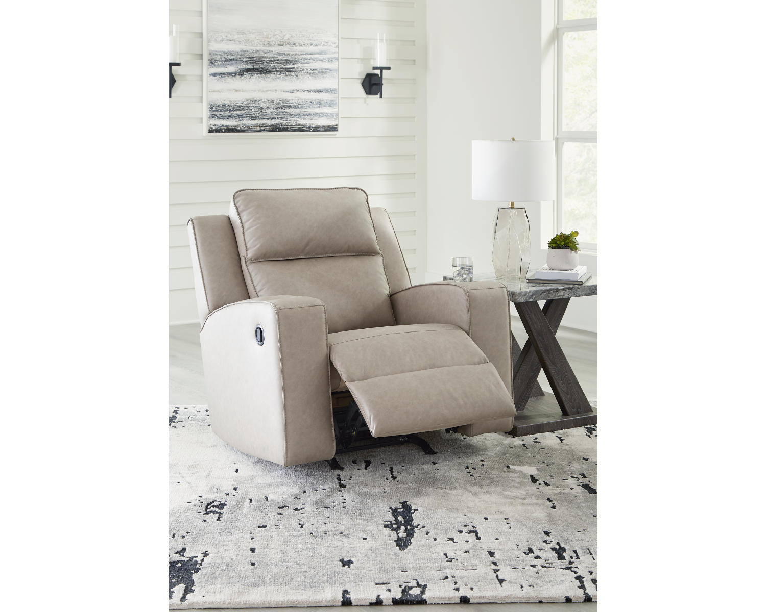Meet the Lavenhorne Recliner, a versatile rocker recliner designed for everyday comfort. The Pebble upholstery offers a neutral, timeless look that blends with a wide range of decors, while the relaxing recline helps you unwind after a long day.