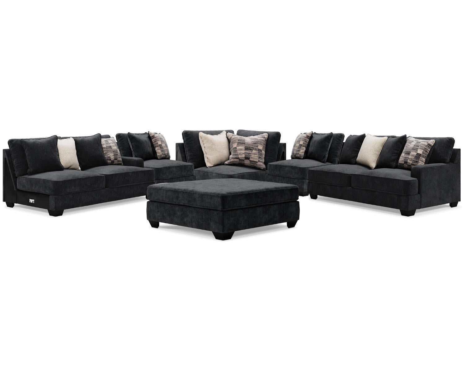 Discover the Lavernett 5-Piece Sectional and Ottoman in charcoal—a versatile seating solution designed for modern living rooms. This modular set offers flexible arrangement options for everyday lounging, family movie nights, and entertaining guests. Clean lines and a timeless charcoal hue help it blend with a wide range of decors.
