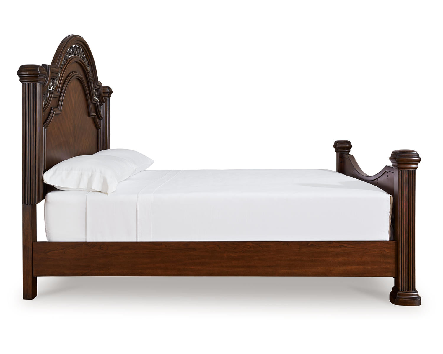 Experience timeless elegance with the Lavinton California King Poster Bed in a rich brown finish. Designed for traditional bedrooms, it offers a stately poster silhouette and a spacious California King sleeping area. Built to be the centerpiece of your room, this bed blends classic style with reliable everyday comfort.