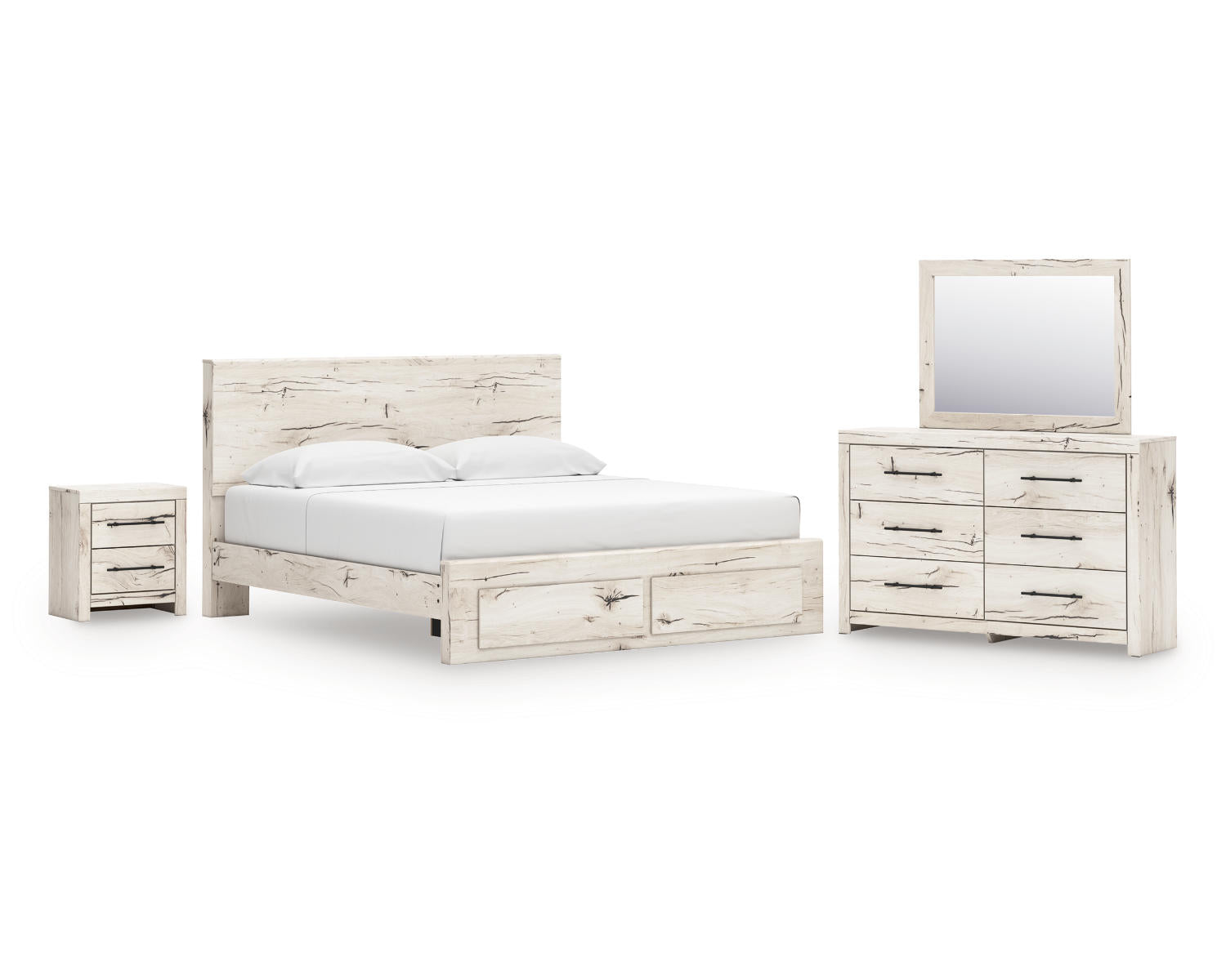 Lawroy King Panel Storage Bed, Dresser, Mirror and Nightstand
