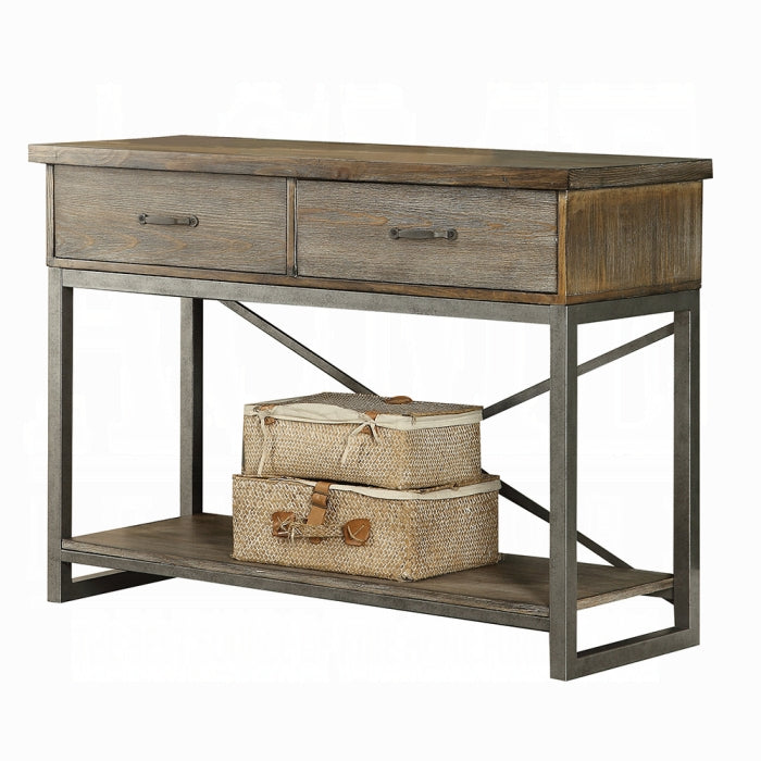 Built with a sturdy metal frame and a solid wood top, the Lazarus Server offers durable everyday use and long-lasting appeal. The Weathered Oak & Antique Silver finish helps conceal minor wear while complementing a variety of interior styles. The KD, rectangular design supports straightforward shipping and setup, reducing handling risks during transit. For value-conscious shoppers, this console delivers a strong combination of durability, style, and practical storage at a competitive price point.