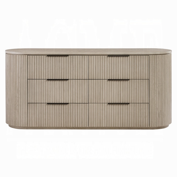 Meet the Leanna Dresser, a spacious storage solution designed for organized bedrooms and timeless style. With a light oak finish and a thoughtful blend of materials, this dresser brings sturdy function and refined texture to daily life.