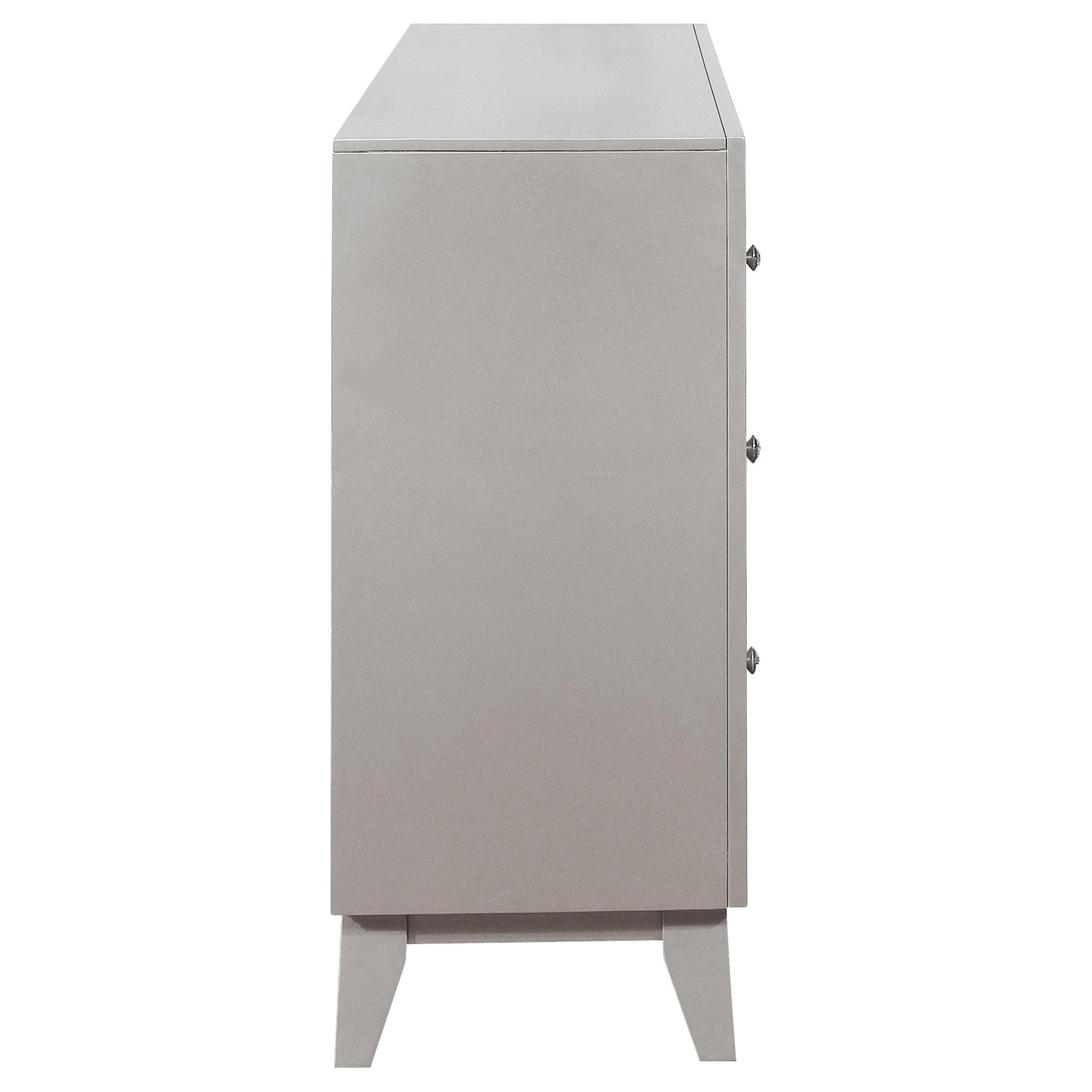Meet the Leighton 7-drawer Dresser in Metallic Mercury—a versatile storage piece designed for bedrooms, living spaces, or entryways. It combines generous drawer space with a modern metallic finish, delivering both organization and contemporary style. Built for everyday use, this dresser brings order and a refined look to your home.
