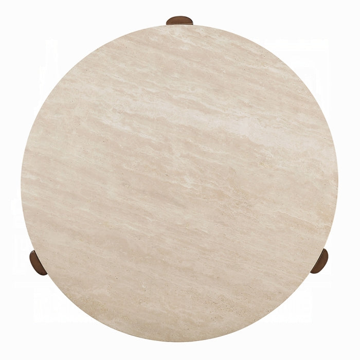 - The combination of a natural travertine top and a sturdy composite wood base provides a durable, stable surface designed for daily use.