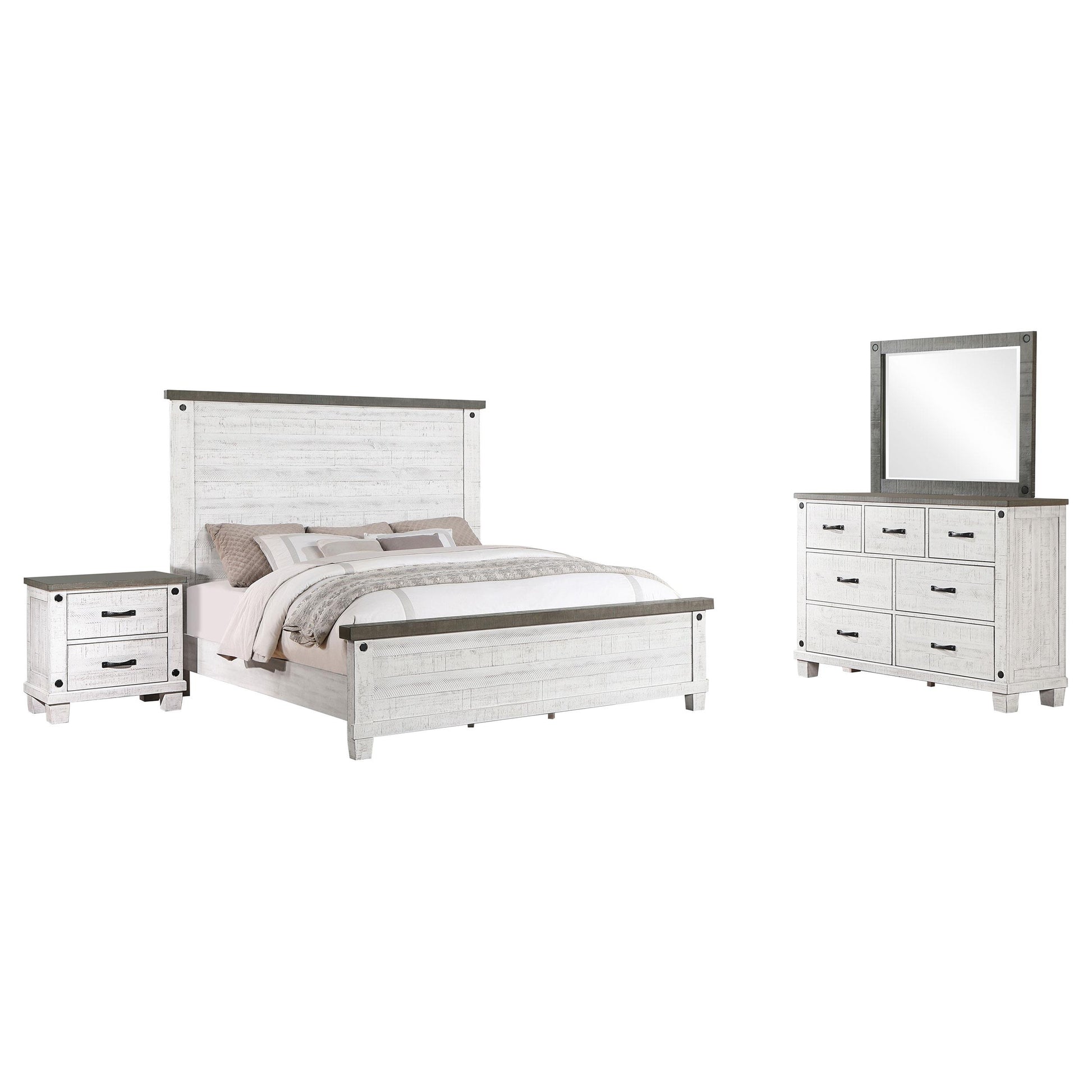 Lilith 4-piece Eastern King Bedroom Set Distressed White