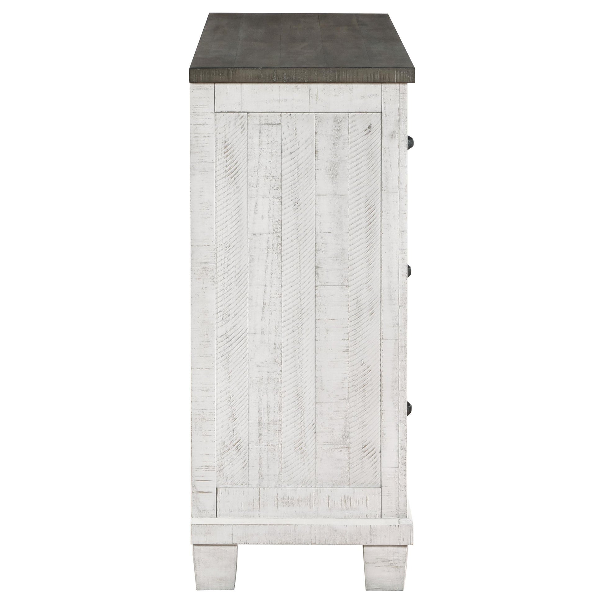 - Distressed White finish: adds rustic charm that complements a range of decors.