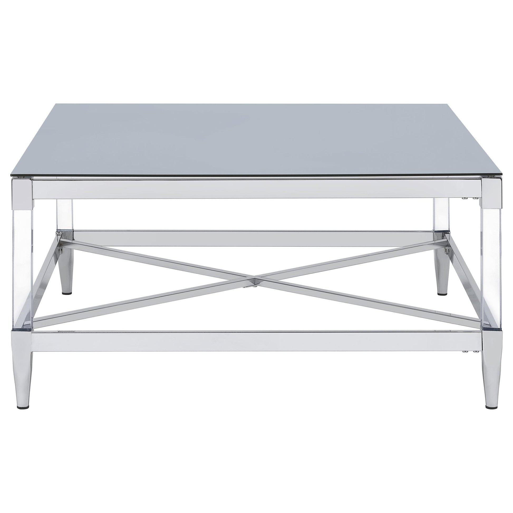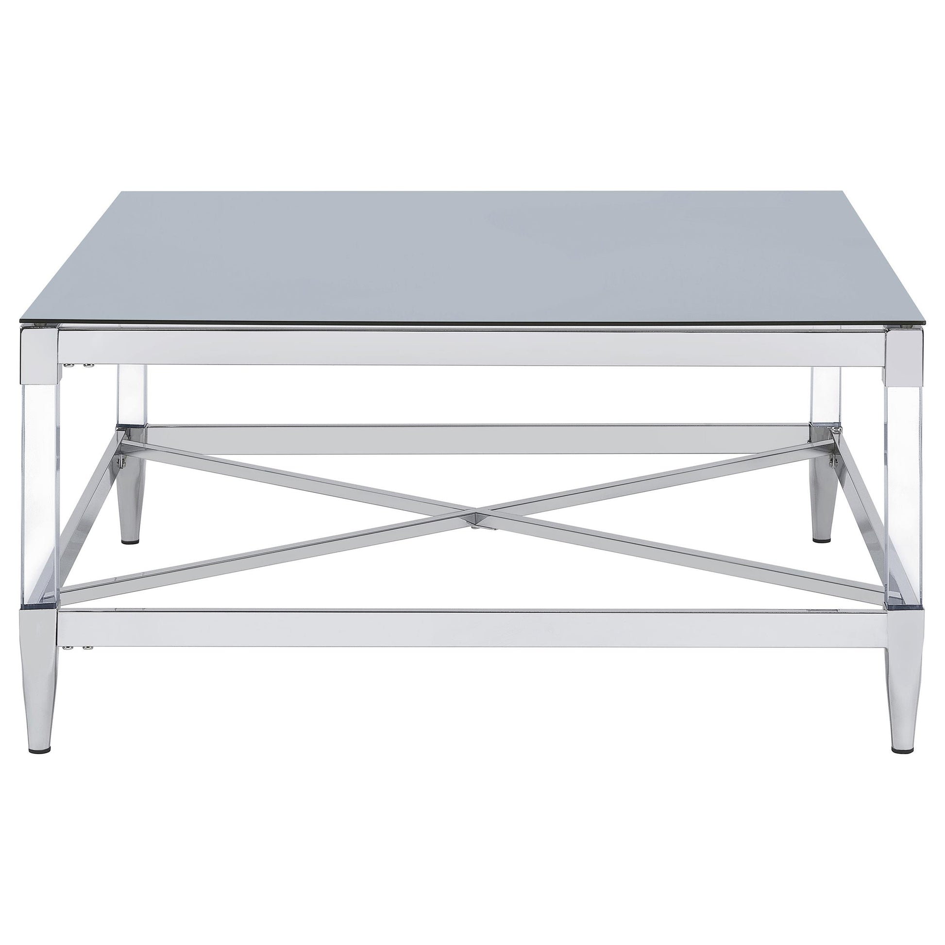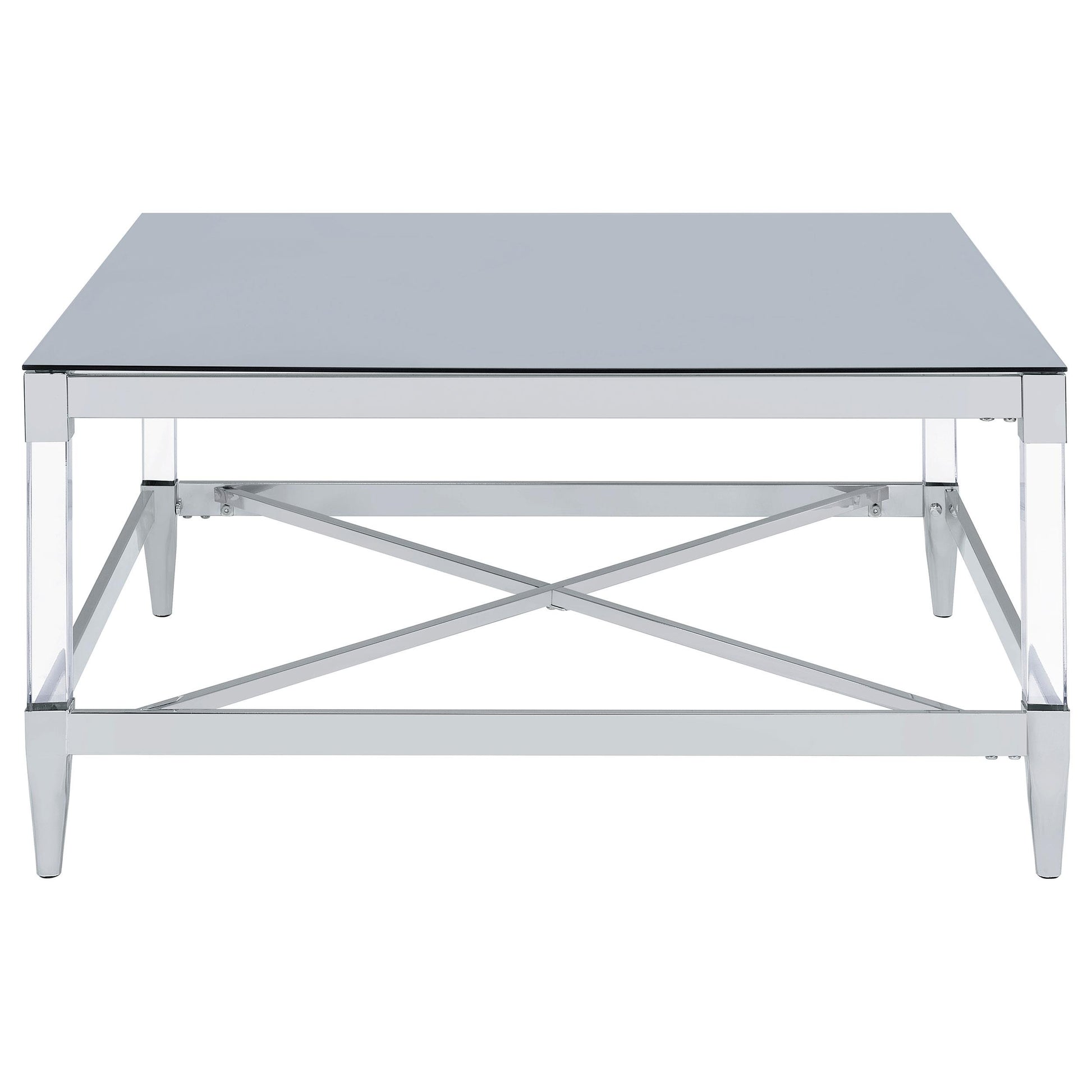 Lindley Square Tempered Mirror Acrylic Coffee Table – Chrome