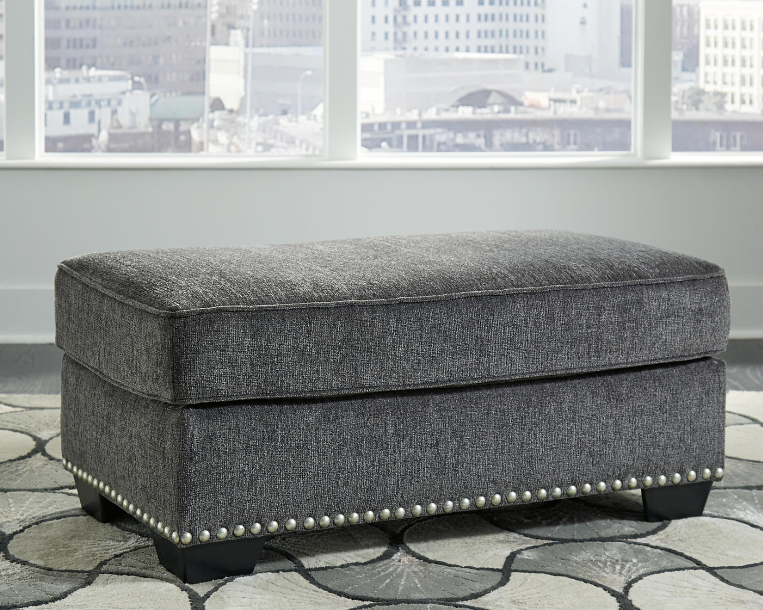 The Locklin Chair and Ottoman is a contemporary seating set designed for modern living spaces. This carbon-colored duo brings a cohesive, streamlined look to your living room, lounge, or home office while inviting hours of comfortable use.