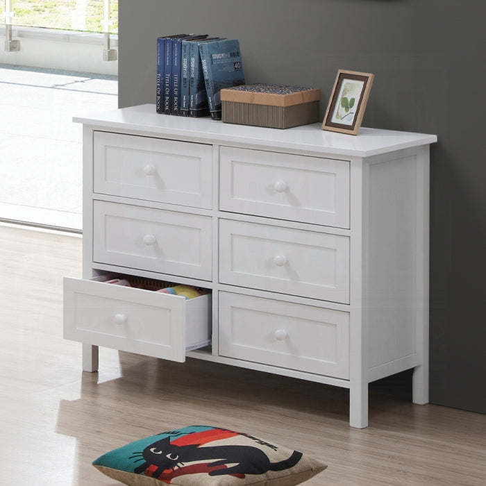 Meet the Lolanda Dresser from the Iolanda bedroom collection. This compact, white-finished piece brings a clean, modern vibe to any bedroom while delivering practical storage. With two spacious drawers, it keeps clothing and essentials neatly organized without taking up extra floor space.
