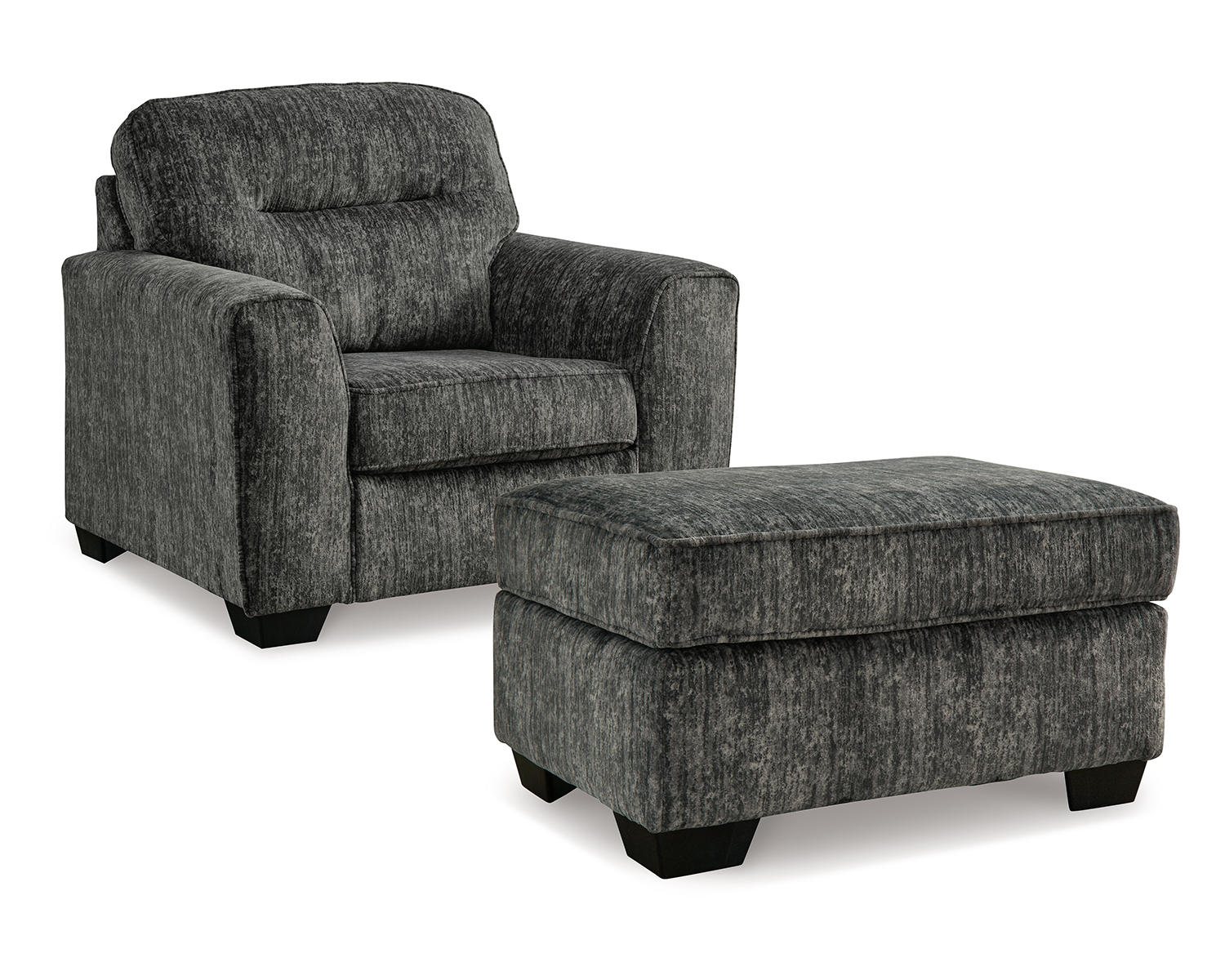 Experience relaxed luxury with the Lonoke Oversized Chair and Ottoman in gunmetal. This generous seating duo is designed for spacious living spaces where comfort and style take center stage. The gunmetal finish adds a contemporary edge that pairs easily with a range of decors.