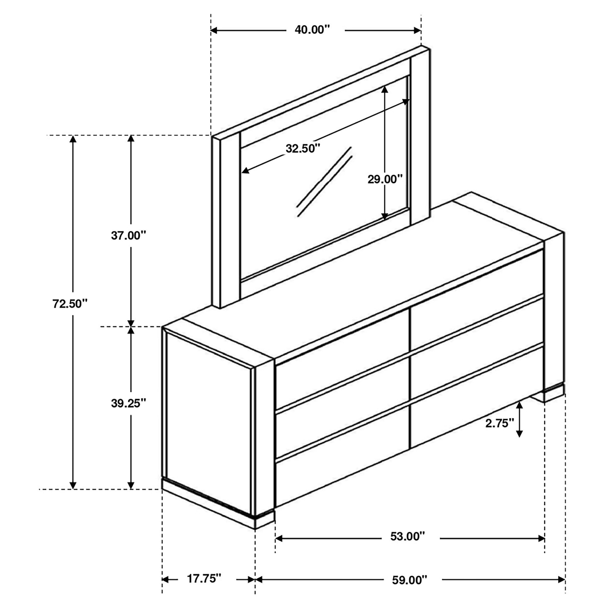 Lorenzo 6-drawer Dresser with Mirror Dark Grey