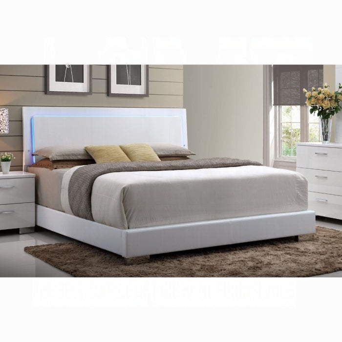 Lorimar EK Bed W/Led – High Gloss White Finish with PU Footboard