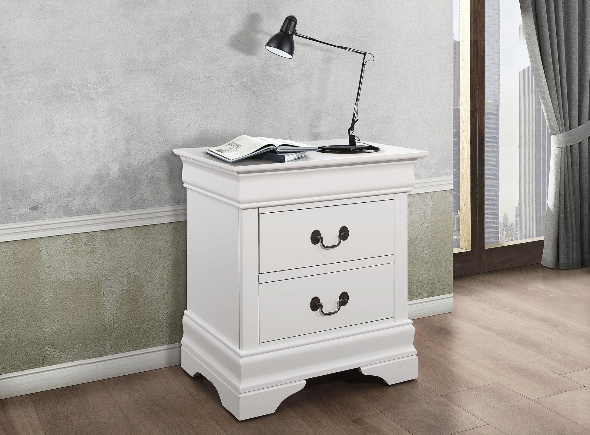 Introducing the Louis Philippe 2-drawer Nightstand in White — a clean, versatile bedside storage solution designed for modern bedrooms. This compact nightstand blends classic Louis Philippe styling with a fresh white finish, offering practical storage and timeless appeal for your space.