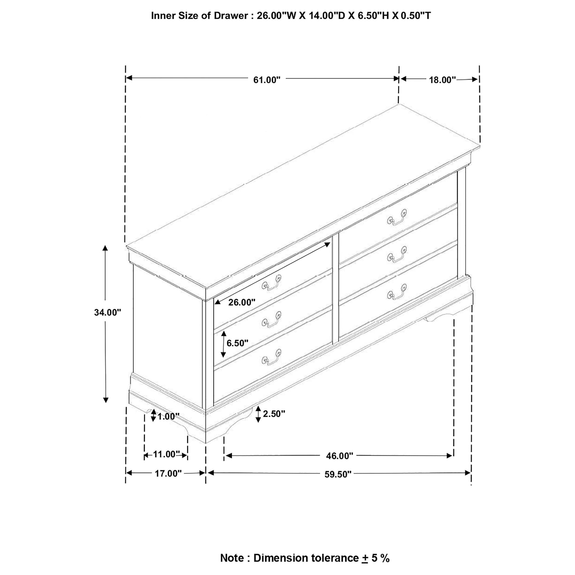 Meet the Louis Philippe 6-drawer Dresser in Black — a practical storage solution for bedrooms that blends clean lines with versatile style. Designed for anyone who values organization and a timeless look, this dresser offers six spacious drawers to keep clothing, accessories, and daily essentials neatly tucked away.