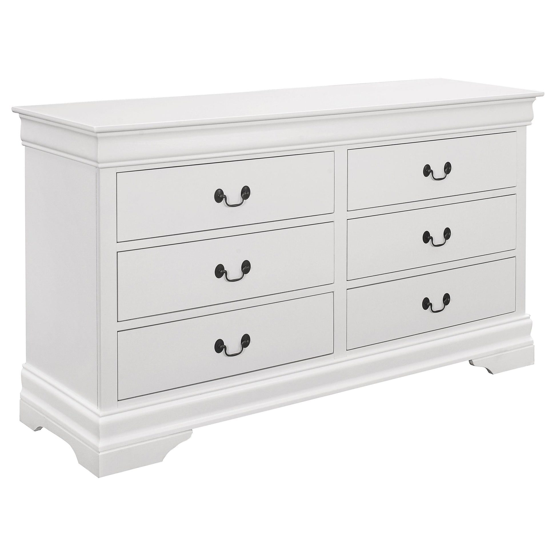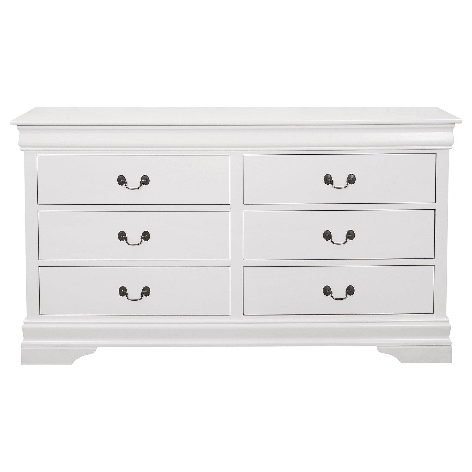 Meet the Louis Philippe 6-drawer Dresser White—an elegant storage solution built for the modern bedroom. With six roomy drawers and a crisp white finish, it keeps clothing, accessories, and essentials neatly organized while enhancing your space with timeless style.