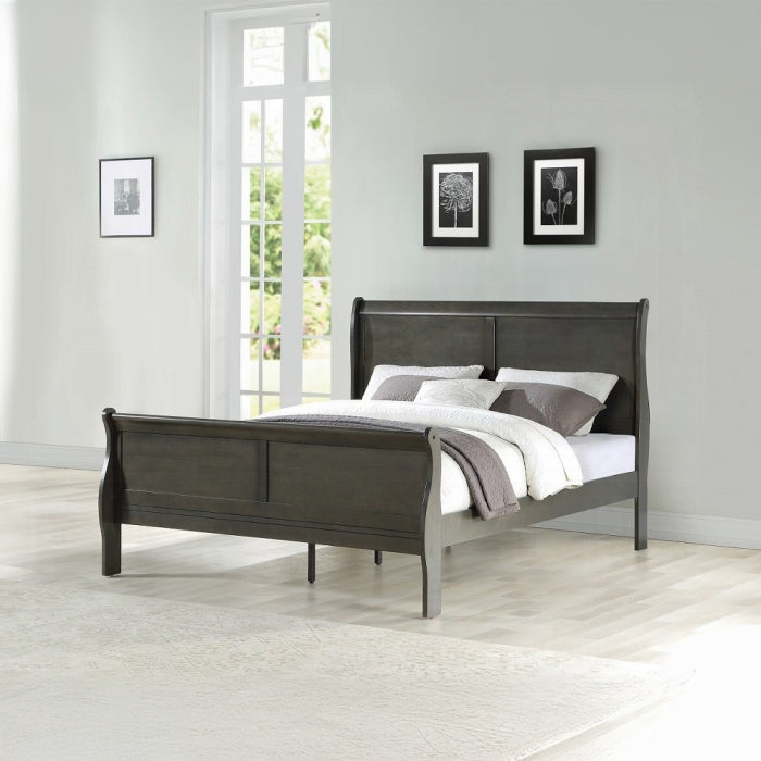 Discover casual elegance with the Louis Philippe EK Bed. This sleigh bed sits at the heart of a classic bedroom set, delivering a timeless silhouette and refined detailing. Finished in a dark gray tone, it pairs a clean, versatile look with understated moldings that enhance any coordinated space.