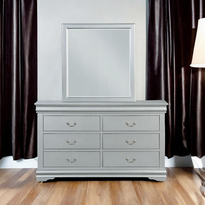 The Louis Philippe III Mirror brings clean lines and versatile elegance to any room. Designed for both sophisticated and casual settings, its simple rectangular frame offers a timeless look. Available in Platinum Finish, with other finishes offered to match your decor, this mirror is a refined addition to your wall.