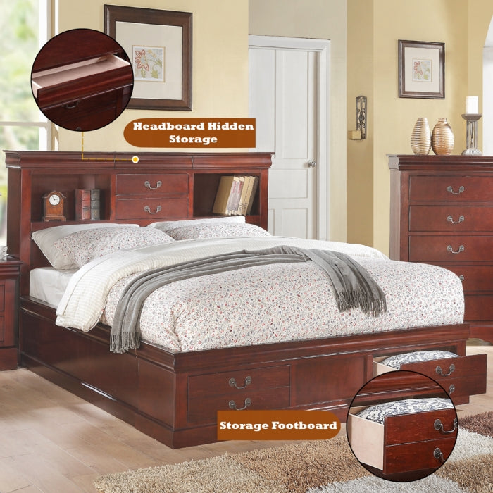 Meet the Louis Philippe III Queen Bed with Storage — a refined centerpiece for modern bedrooms that value both style and organization. This bed features a headboard with hidden drawers and a storage bed design designed to keep belongings neatly out of sight. Crafted from selected wood and veneers and accented with brushed nickel hardware, it blends classic elegance with practical utility.