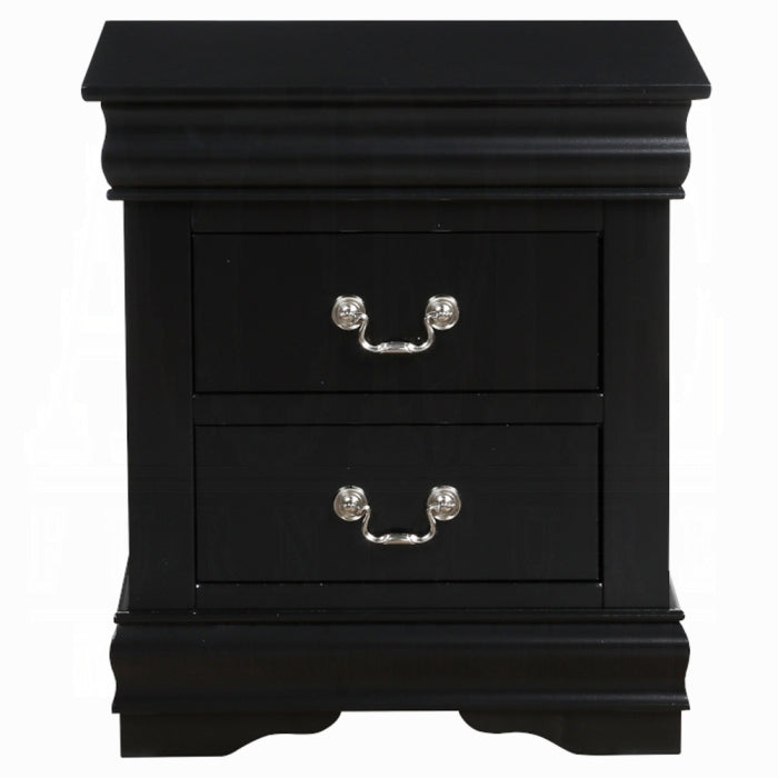 The Louis Philippe Nightstand brings engineered wood and veneer craftsmanship to your bedroom for enduring elegance. Designed for reliable everyday use, it pairs classic refinement with modern durability, making it suitable for traditional and contemporary décors alike. The drawer fronts showcase brush nickel hardware and are framed by crown molding details for a refined finish.